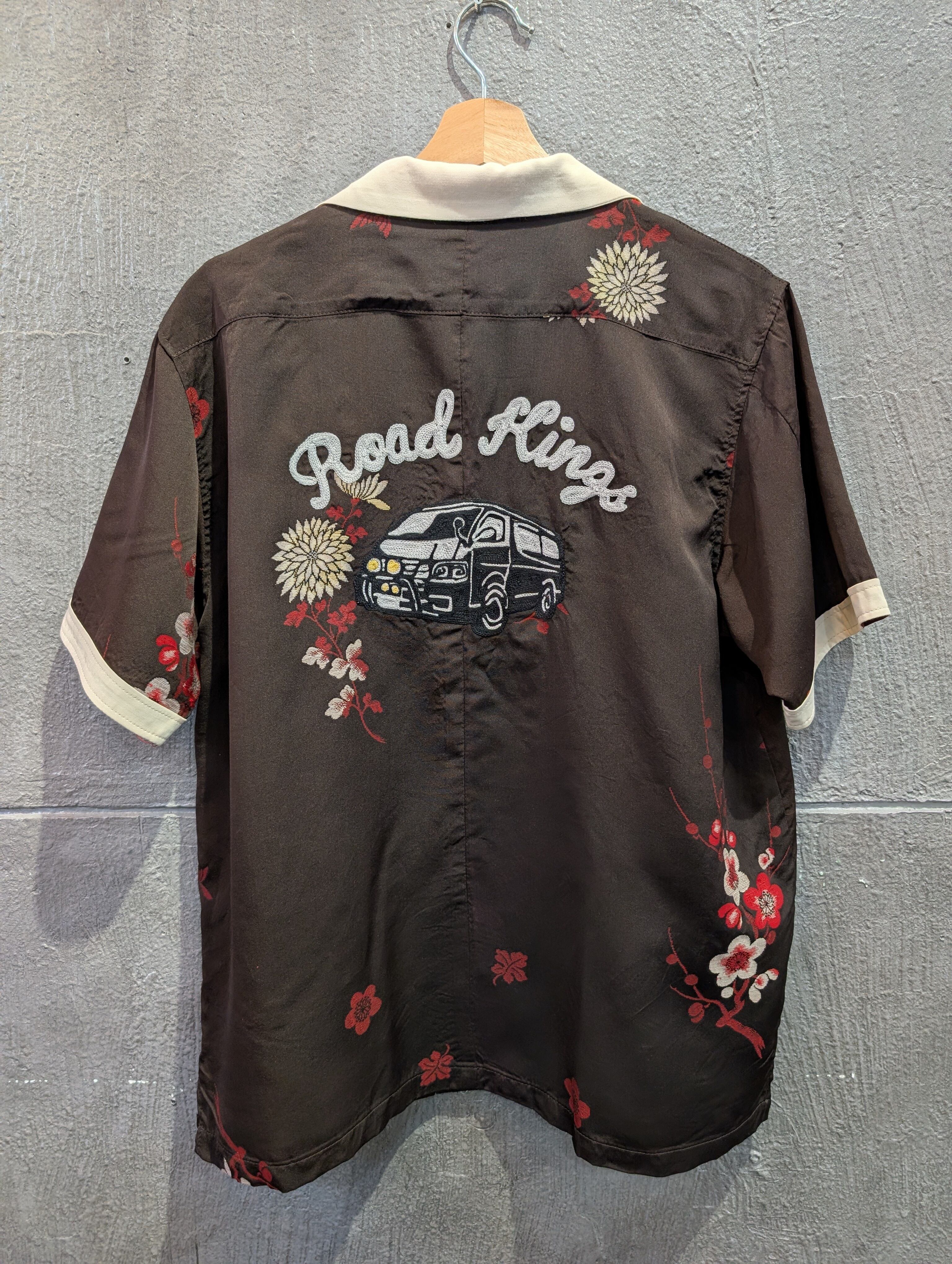 [着物 ボウリングシャツ] color : ブラウン×ホワイト size : M 着丈 66.5 肩幅 46 身幅 54 袖丈 23.5 日常でも着れる着物をテーマに! 日本人として着物は着たい!けど日常に取り入れにくい、、 そんな思いから作られた着物ボーリングシャツ。 着物1着でボーリングシャツ1着しか作れないので1点1点、柄や生地の風合いが違い、背中の刺繍にはTHE ENDの思い入れが詰まったHIACE VAN★ ぜひ自分好みの1着を探してみてください。 ※店頭にて同時販売しておりますので、無くなり次第終了となります。 ※新品のお品ですが、古着を使用しておりますので、生地の状態などに多少のダメージなどが見られる場合がございます。