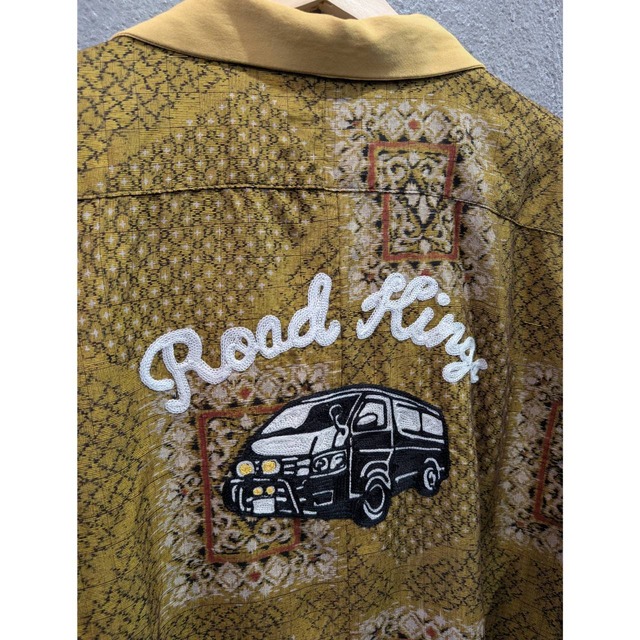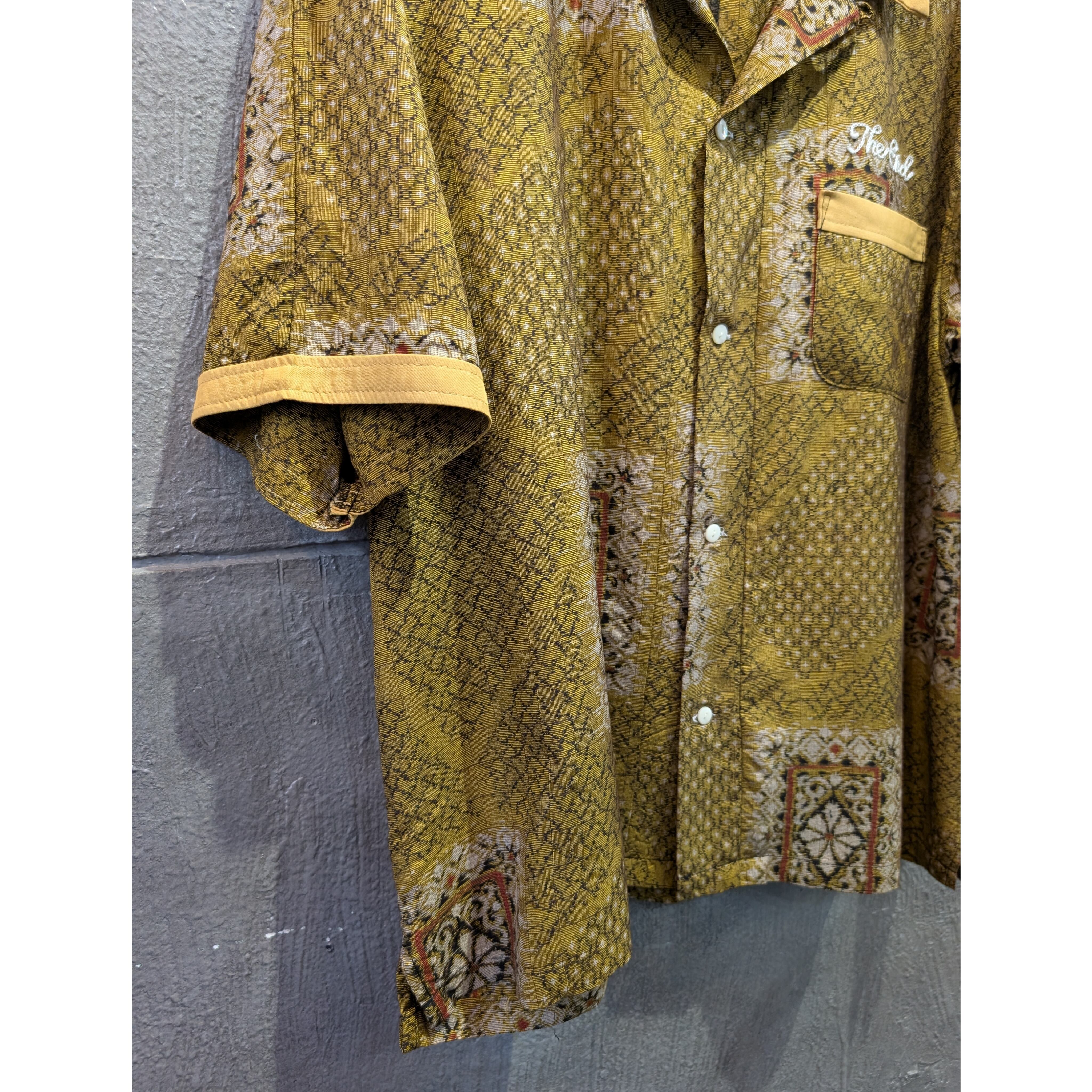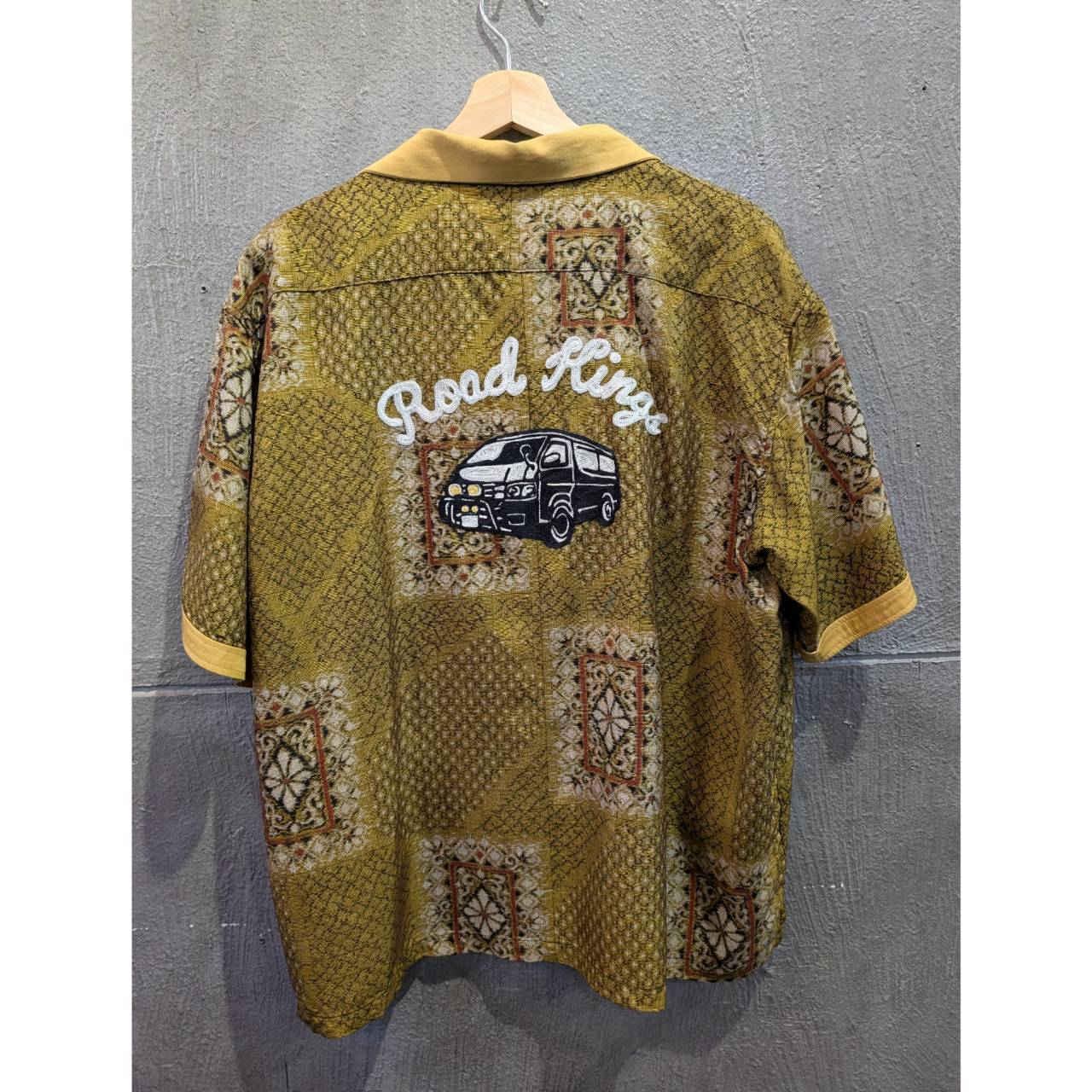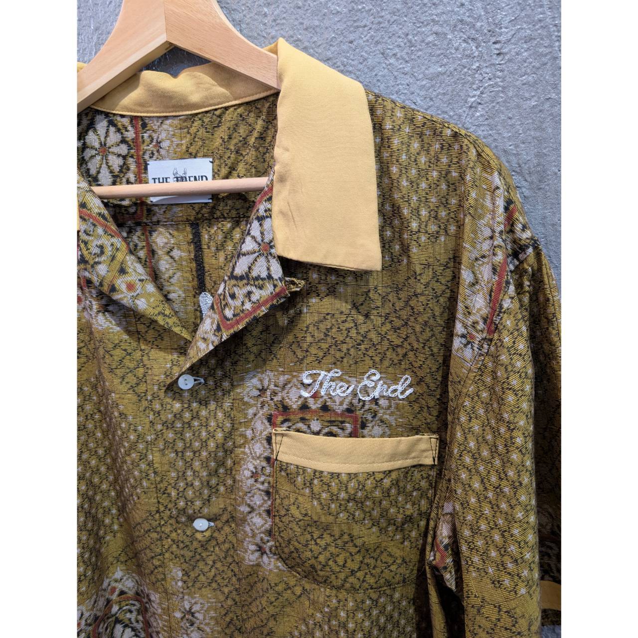 [着物 ボウリングシャツ] color : イエロー×イエロー size : XL 着丈 68 肩幅 53 身幅 62 袖丈 26 日常でも着れる着物をテーマに! 日本人として着物は着たい!けど日常に取り入れにくい、、 そんな思いから作られた着物ボーリングシャツ。 着物1着でボーリングシャツ1着しか作れないので1点1点、柄や生地の風合いが違い、背中の刺繍にはTHE ENDの思い入れが詰まったHIACE VAN★ ぜひ自分好みの1着を探してみてください。 ※店頭にて同時販売しておりますので、無くなり次第終了となります。 ※新品のお品ですが、古着を使用しておりますので、生地の状態などに多少のダメージなどが見られる場合がございます。