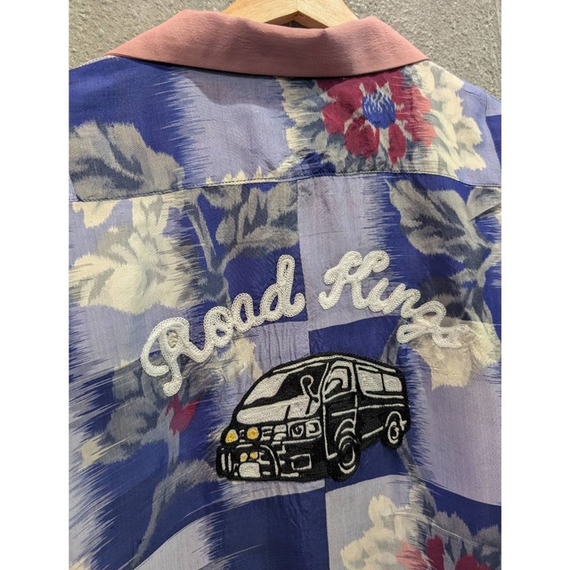 [着物 ボウリングシャツ] color : ブルー×ピンク size : XL 着丈 70 肩幅 52 身幅 59 袖丈 27 日常でも着れる着物をテーマに! 日本人として着物は着たい!けど日常に取り入れにくい、、 そんな思いから作られた着物ボーリングシャツ。 着物1着でボーリングシャツ1着しか作れないので1点1点、柄や生地の風合いが違い、背中の刺繍にはTHE ENDの思い入れが詰まったHIACE VAN★ ぜひ自分好みの1着を探してみてください。 ※店頭にて同時販売しておりますので、無くなり次第終了となります。 ※新品のお品ですが、古着を使用しておりますので、生地の状態などに多少のダメージなどが見られる場合がございます。