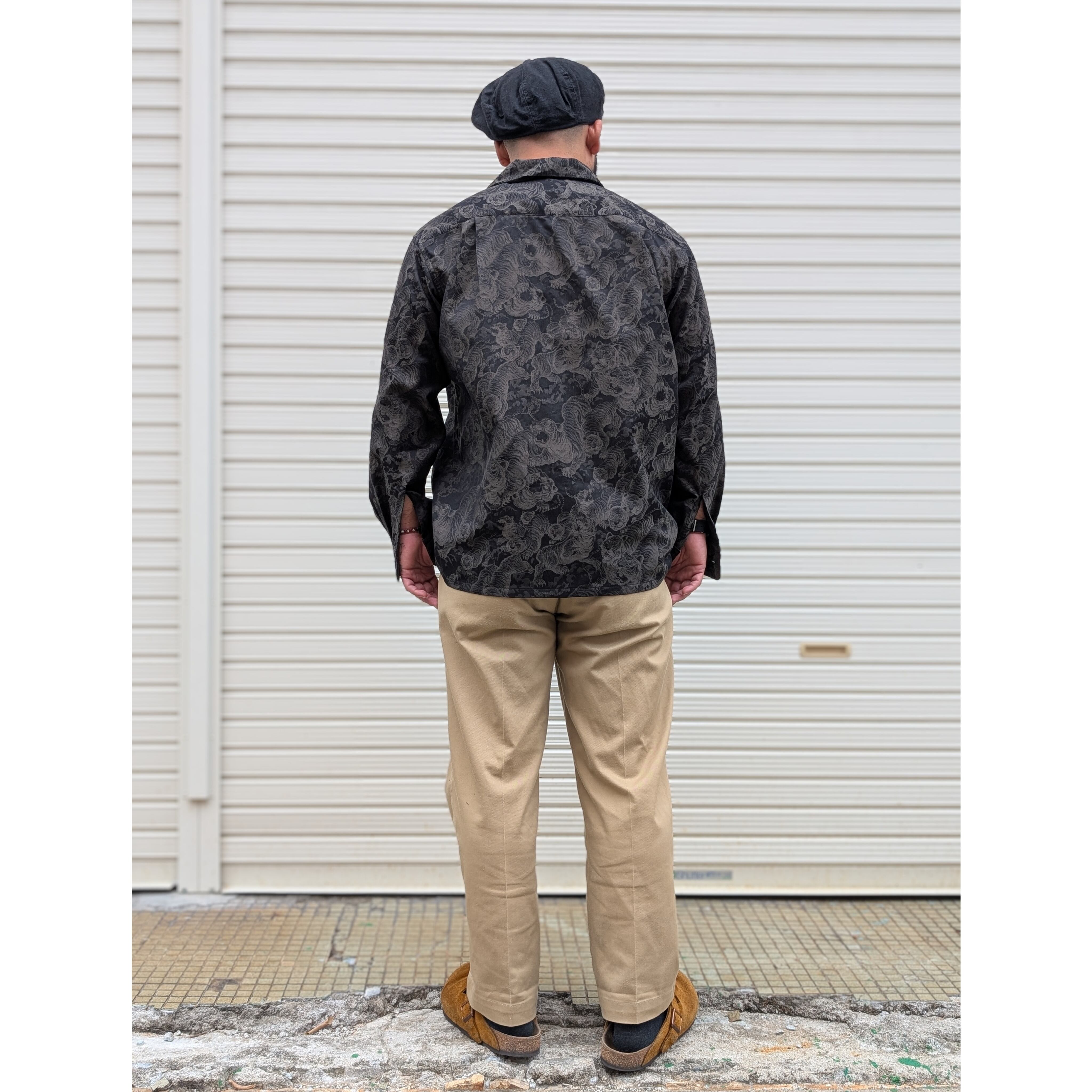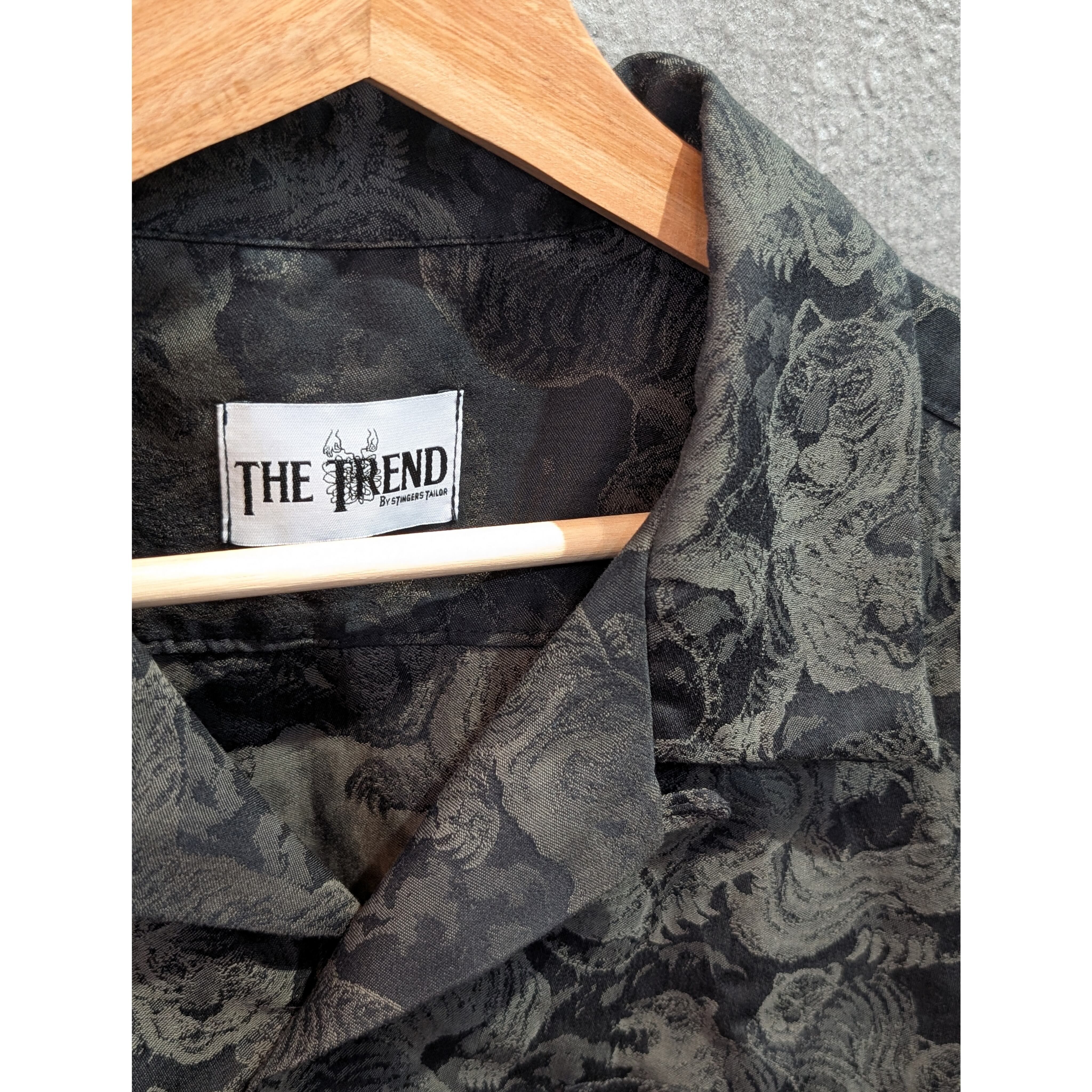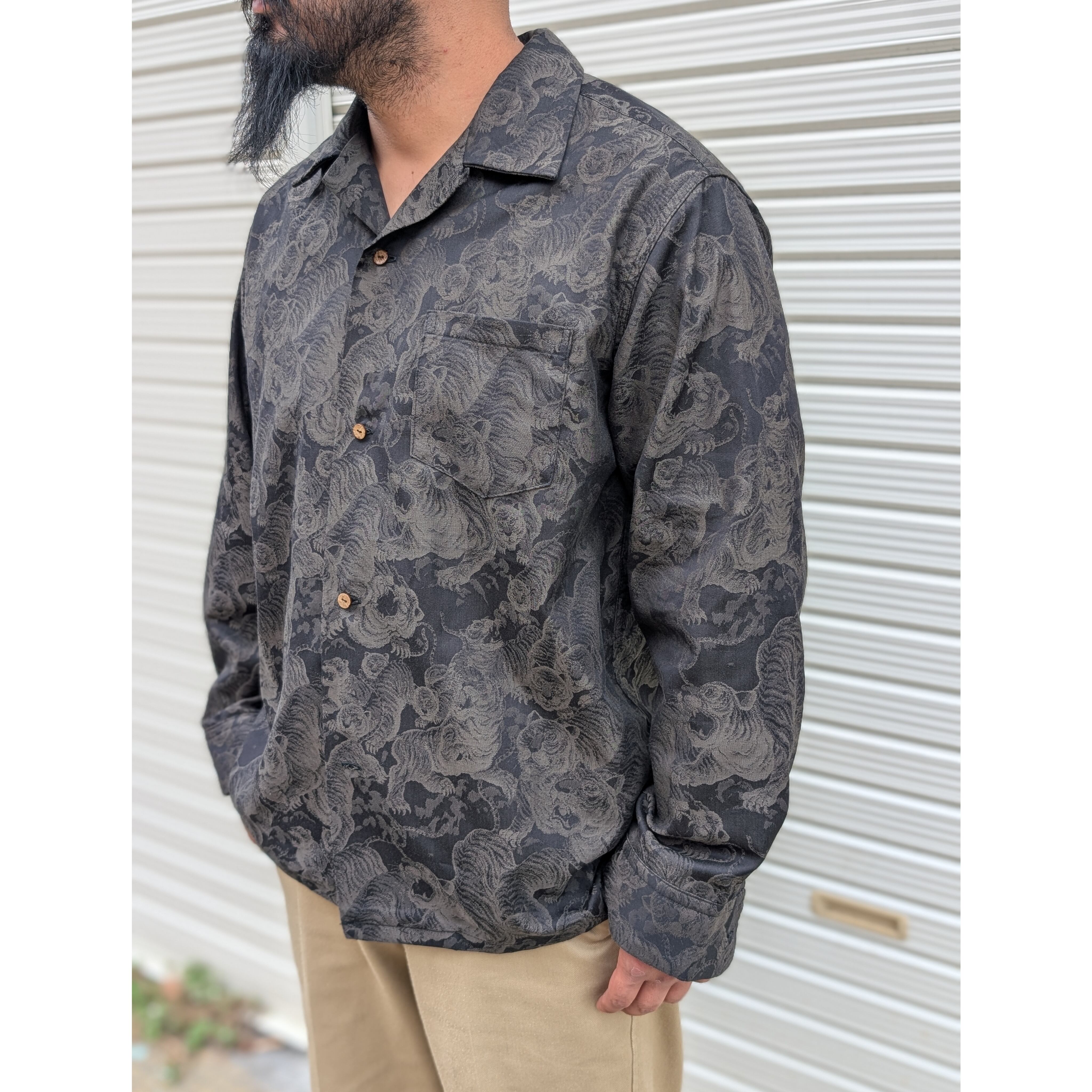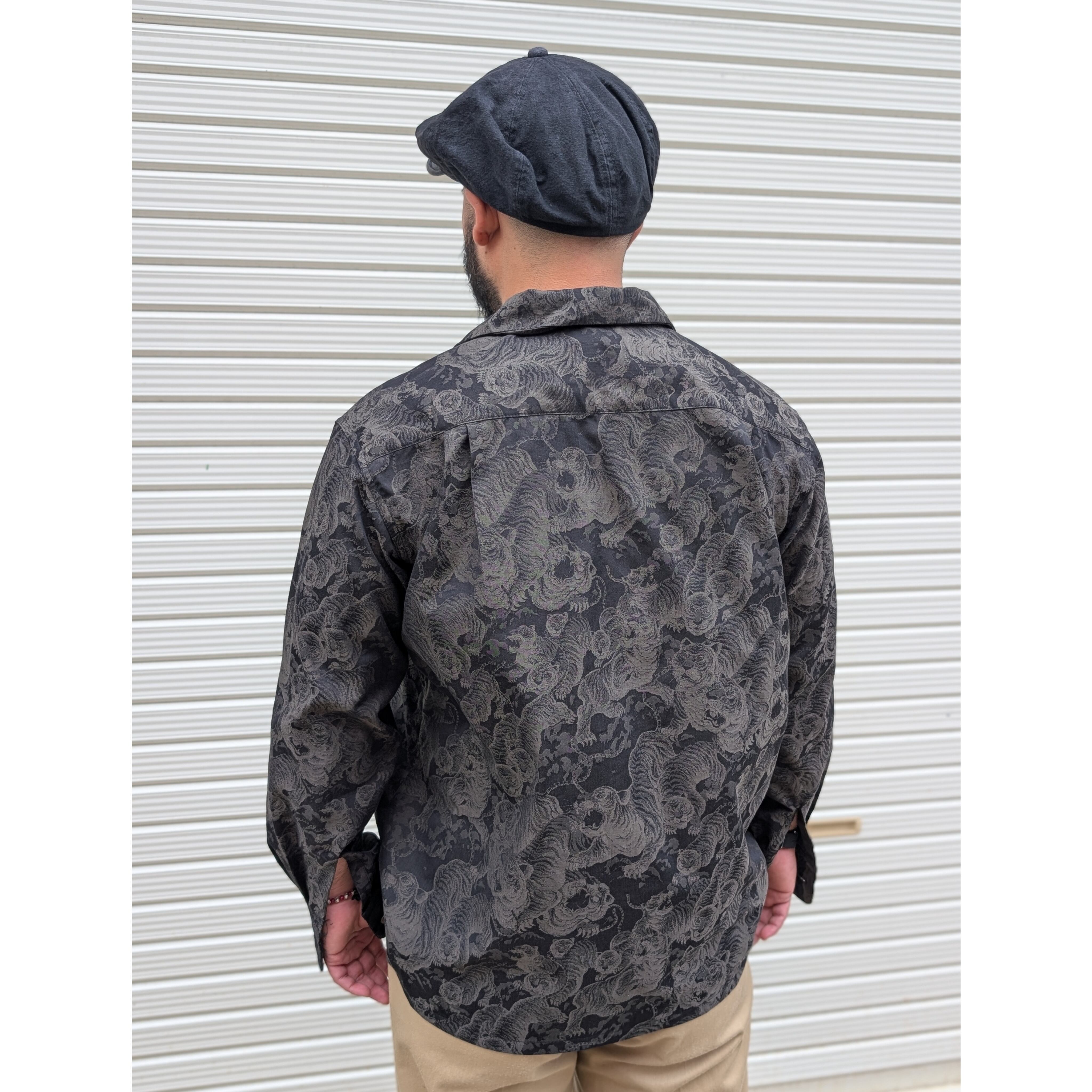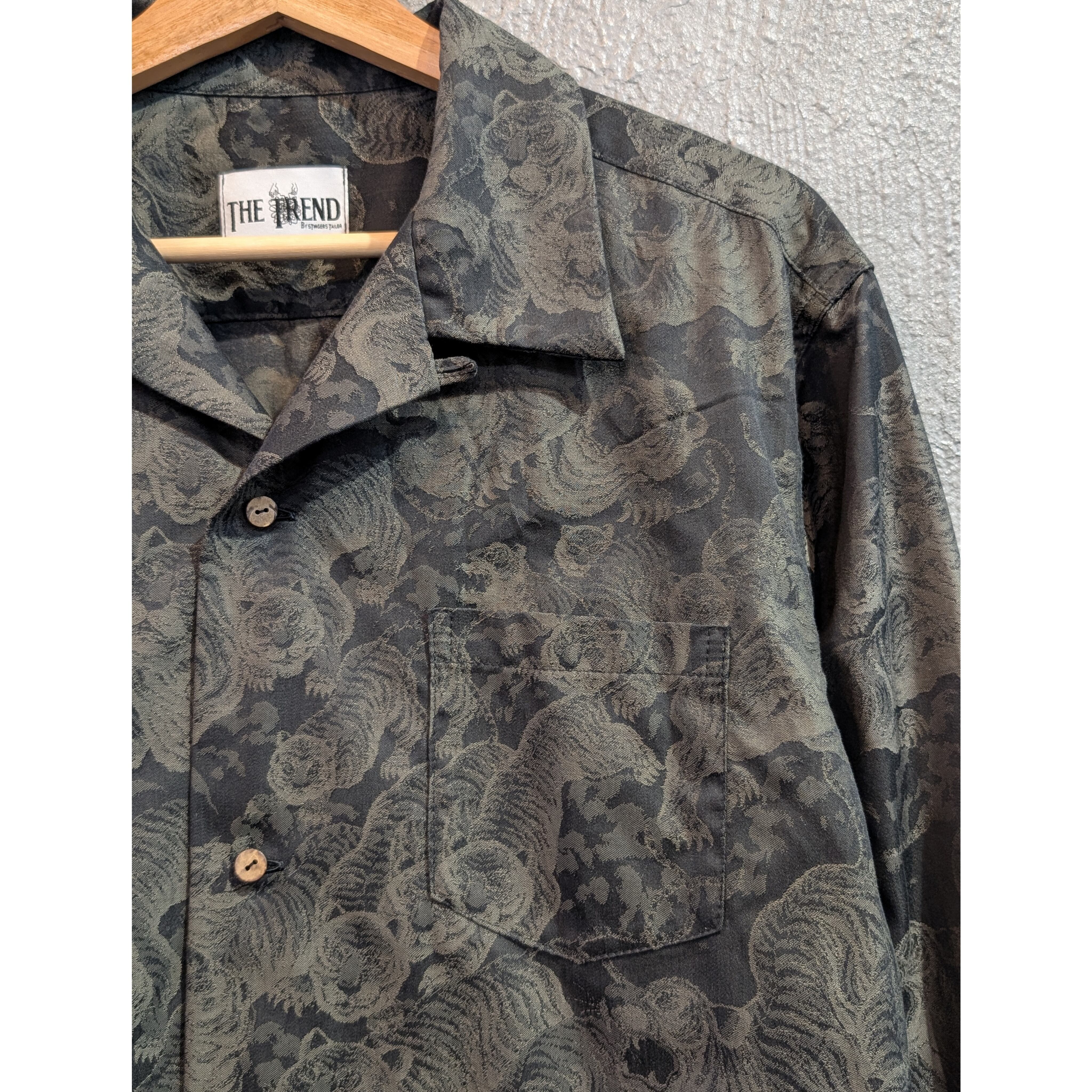 [百虎ジャガード アロハシャツ] color : グリーン size : XL 着丈 70 肩幅 51 身幅 61 袖丈 58 日常でも着れる着物をテーマに! 日本人として着物は着たい!けど日常に取り入れにくい、、 そんな思いから作られた着物ボーリングシャツ。 夏のイメージが強いアロハシャツを、シーズンレスに楽しめる落ち着いたカラーとロングスリーブ仕様で仕立てました! 無数の虎が躍動する、圧倒的な迫力の総柄シャツ♫ シャツとしても、羽織としても主役になれる一枚です✨️ ※店頭にて同時販売しておりますので、無くなり次第終了となります。 ※1着1着が1点物のアイテムになりますので、柄の配置などがそれぞれ異なります。予めご了承ください。