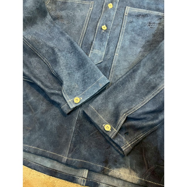 [M-35 レザーシャツ] 【color】Indigo 【size】Free 平置き実寸 肩幅 55cm 身幅 61cm 着丈 70cm 袖丈 58cm 多少の誤差はご了承ください! ※革の表情は商品毎に、パーツ毎に変わりますので写真の商品と同じ様な仕上がりにはなりません。1着1着が1点物のアイテムになりますので予めご承知くださいませ。 ※尚、店頭にて同時販売しておりますので、無くなり次第終了となります。