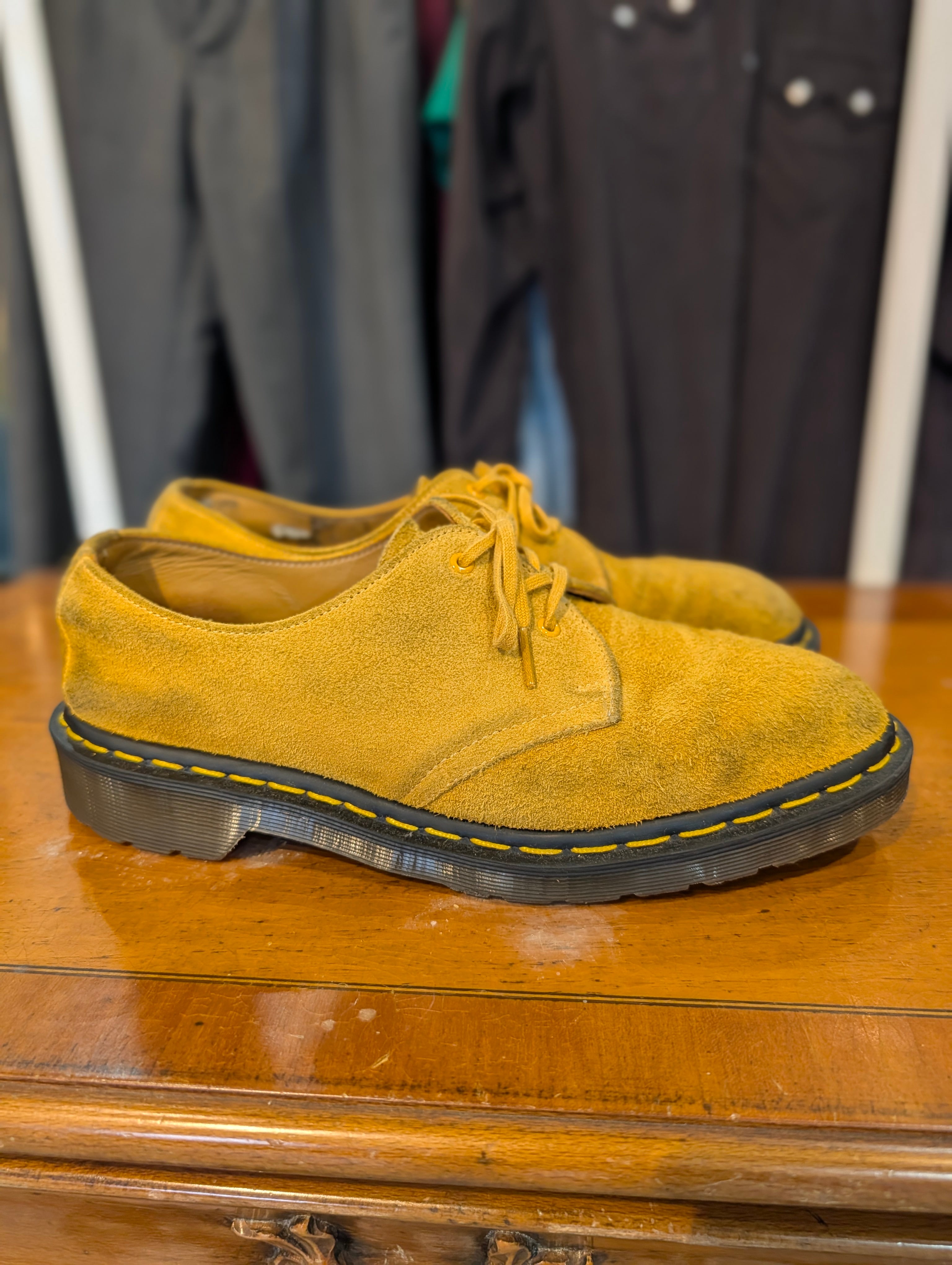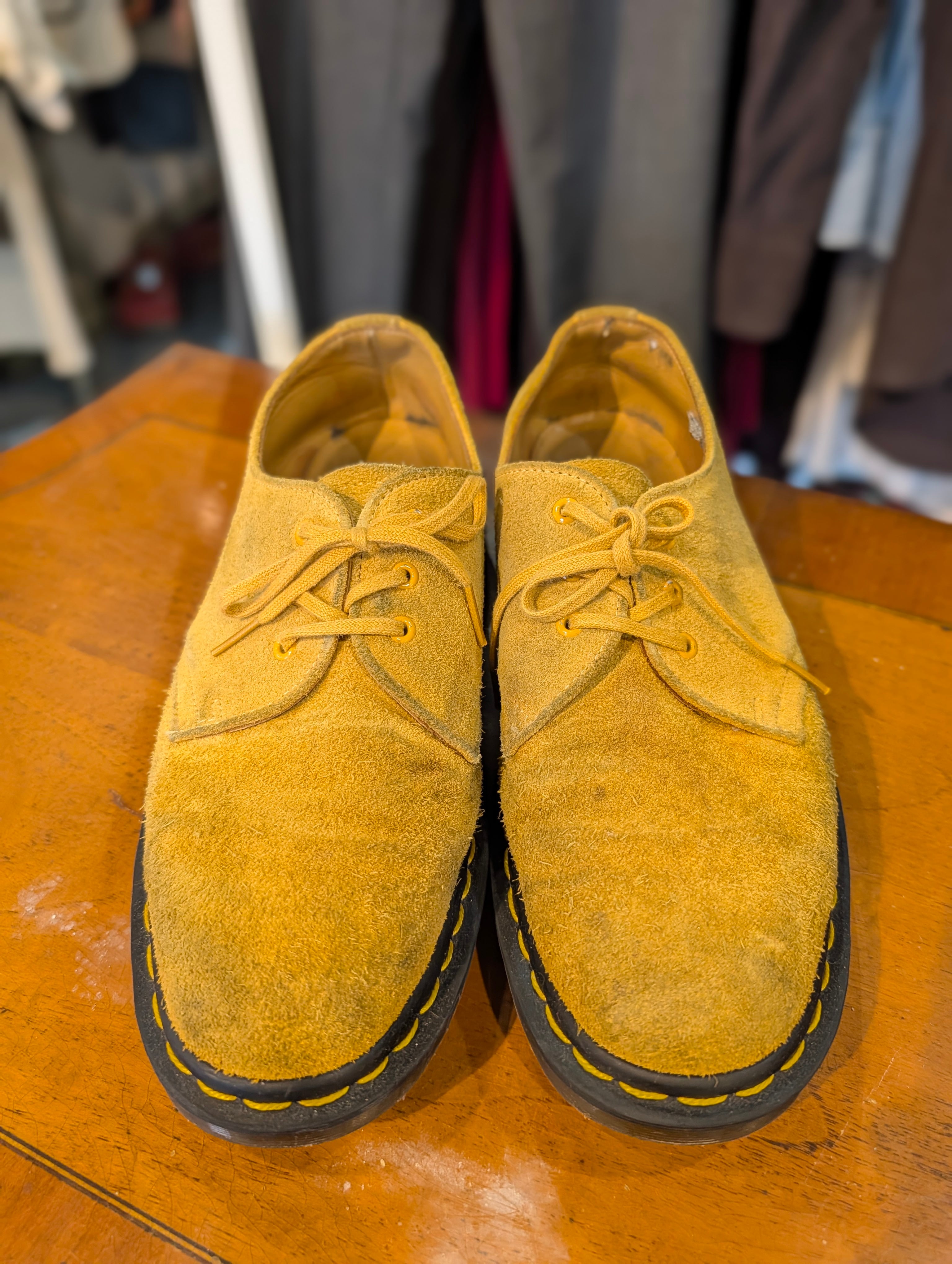 英国製 ドクターマーチン C.F. Stead社 3ホールシューズ UK6/25cm [カラー] マスタードイエロー [サイズ] UK 6 JP 25cmアウトソール(28.5cm) [状態]C S(新品同様):未使用、 または新品同様のアイテム A (使用感なし):数回使用した程度で 使用感が感じられないアイテム B(目立つ使用感なし):使用感が少ない、 または気にならないアイテム C(やや使用感あり):使用感があり、 やや気になる傷や汚れがあるアイテム D (傷・汚れあり):傷や汚れがあるが 使用には問題ないアイテム ※店頭にて同時販売しておりますので、売り切れの場合がございます。 ※革の表情は商品毎に、パーツ毎に変わりますので写真の商品と同じ様な仕上がりにはなりません。1着1着が1点物のアイテムになりますので予めご承知くださいませ