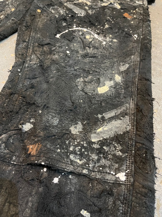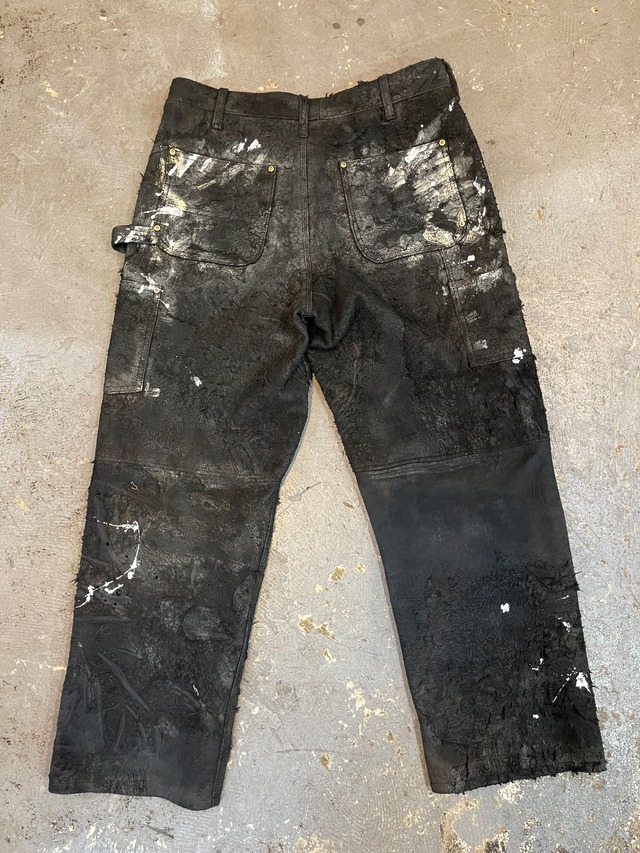 [ペインターパンツ] 【color】Black×paint 【size】34 平置き実寸 ウエスト 39 ワタリ 32.5 股上 31 股下 70 裾幅 22.5 多少の誤差はご了承ください! ※革の表情は商品毎に、パーツ毎に変わりますので写真の商品と同じ様な仕上がりにはなりません。1着1着が1点物のアイテムになりますので予めご承知くださいませ。 ※尚、店頭にて同時販売しておりますので、無くなり次第終了となります。