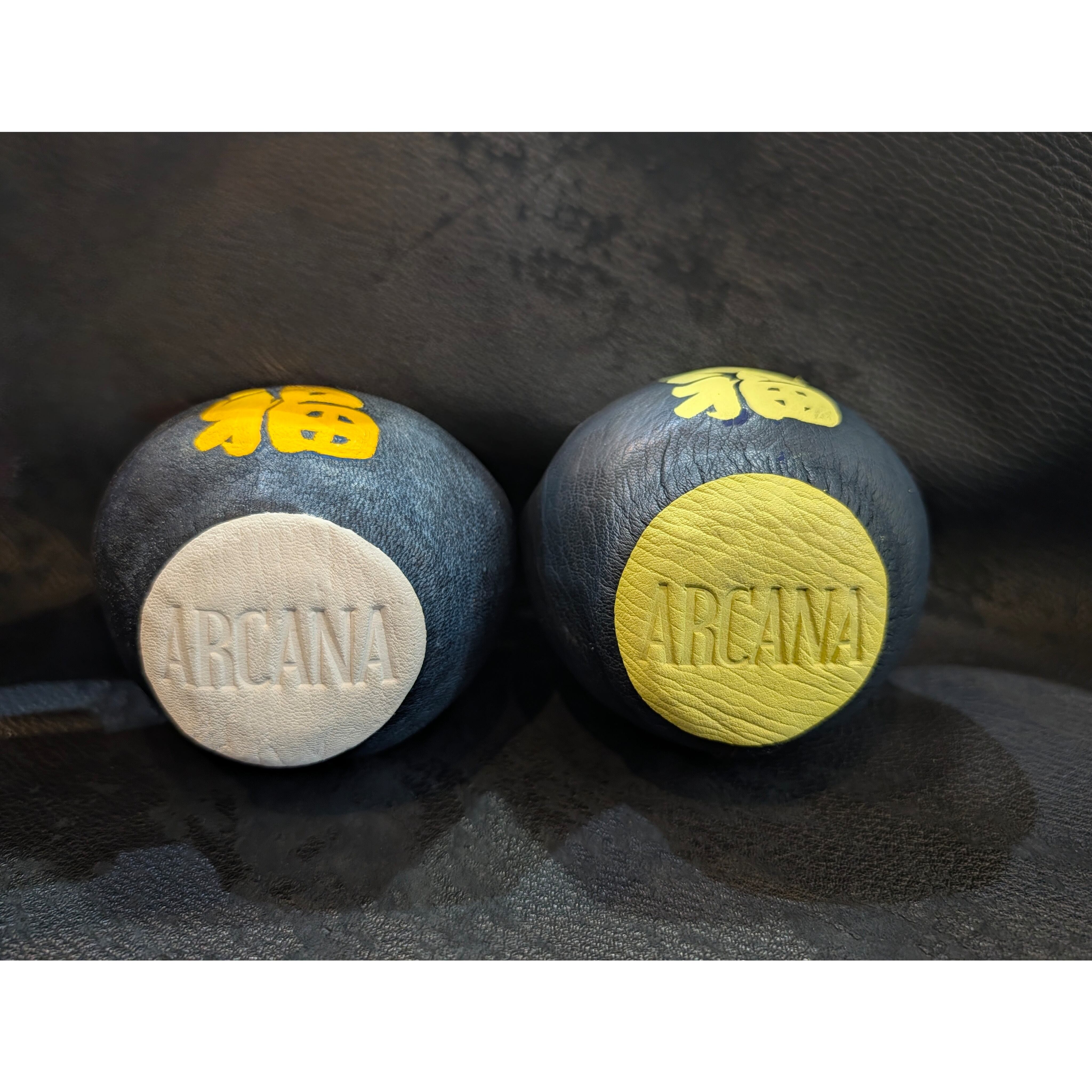 [アルカナ 達磨] 【color】Indigo×white / Brown-Core Navy×Lime 【size】12.5cm ※革の表情は商品毎、パーツ毎に変わりますので写真の商品と同じ様な仕上がりにはなりません。一個一個が1点物のアイテムになりますので予めご承知くださいませ。 ※尚、店頭にて同時販売しておりますので、無くなり次第終了となります。