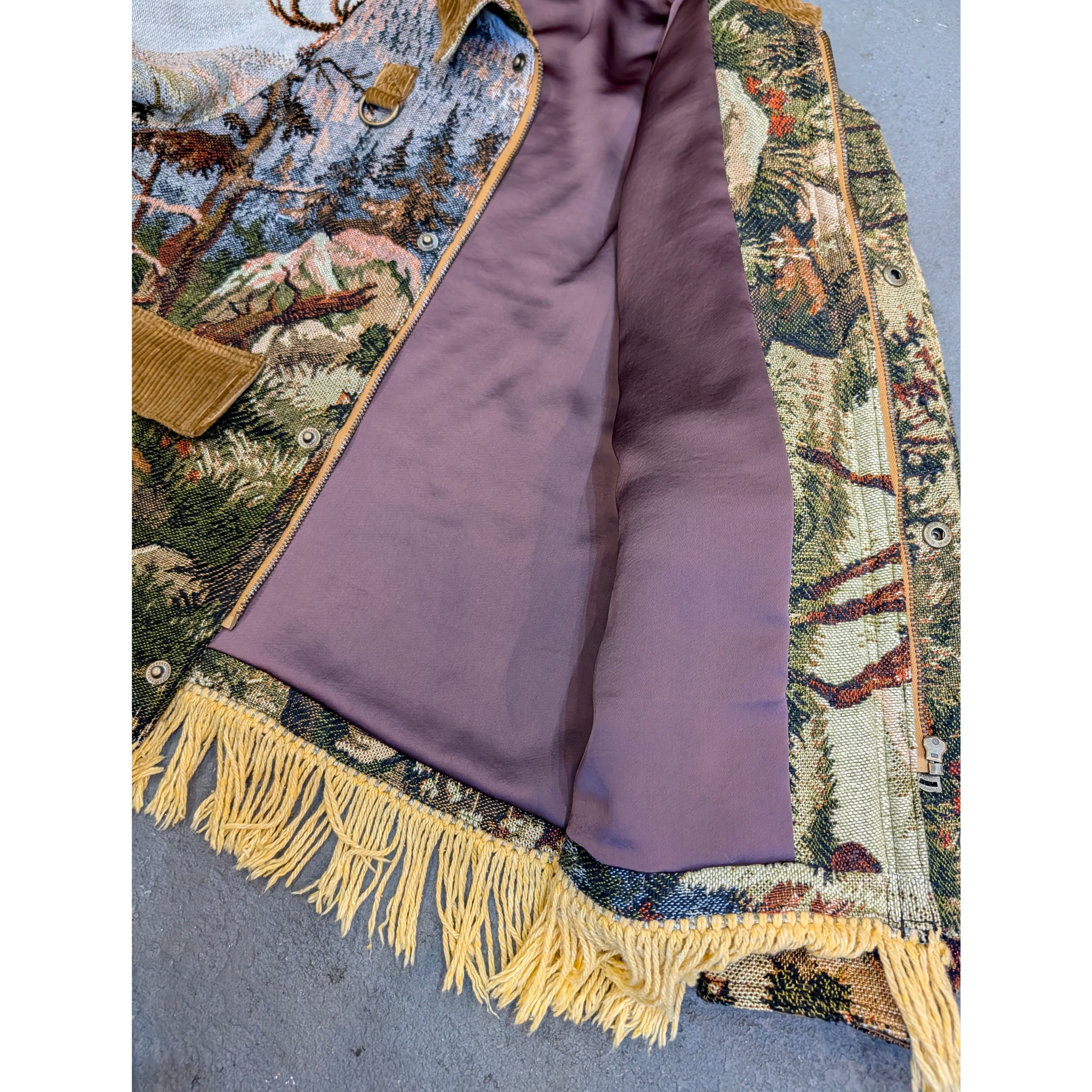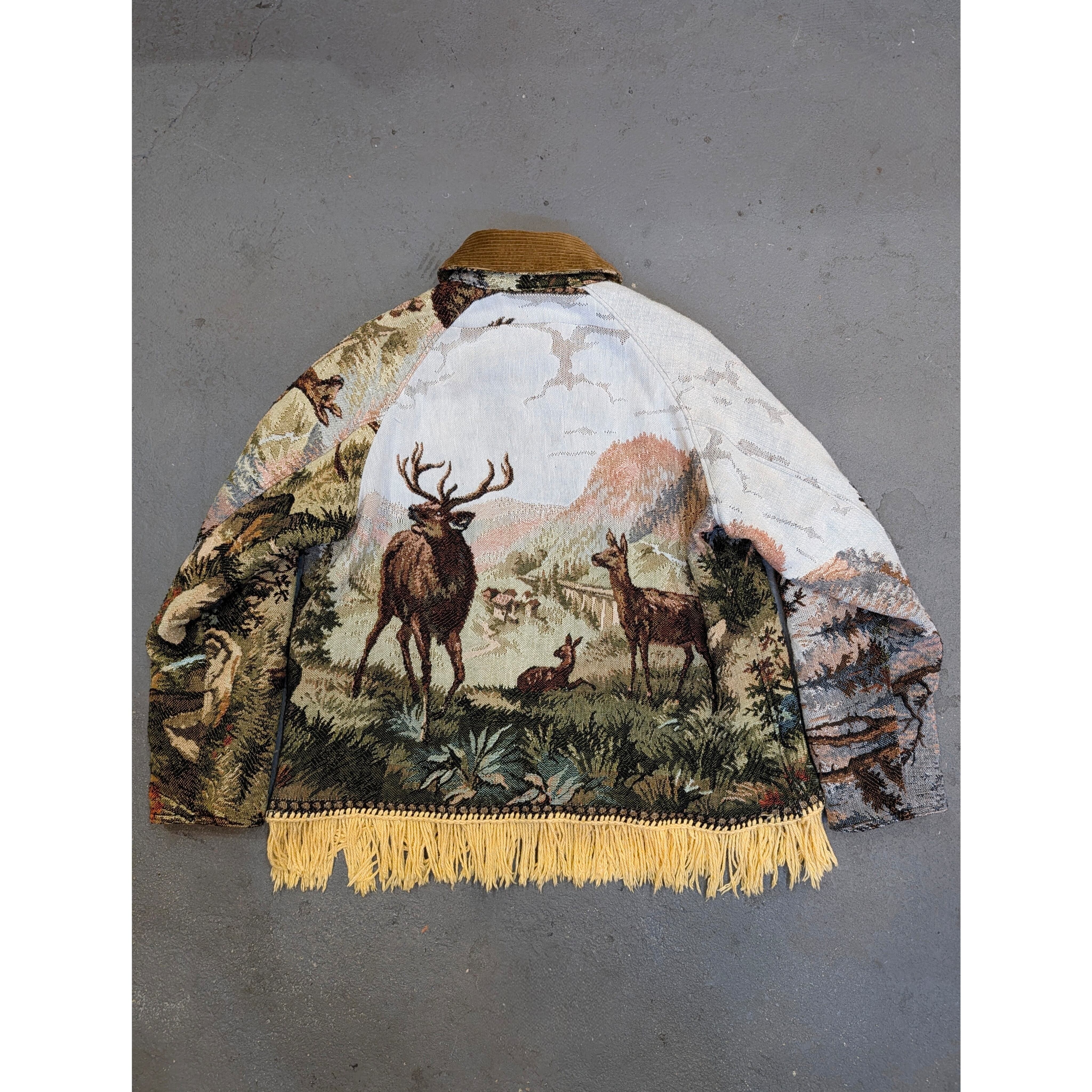 [コレモ/Vintage ブランケット スペイジャケット] 【type】Deer and Eagle 【size】M 平置き採寸 着丈 63cm(フリンジ含まない) 身幅 61cm 裄丈 82cm ※尚、店頭にて同時販売しておりますので、無くなり次第終了となります。
