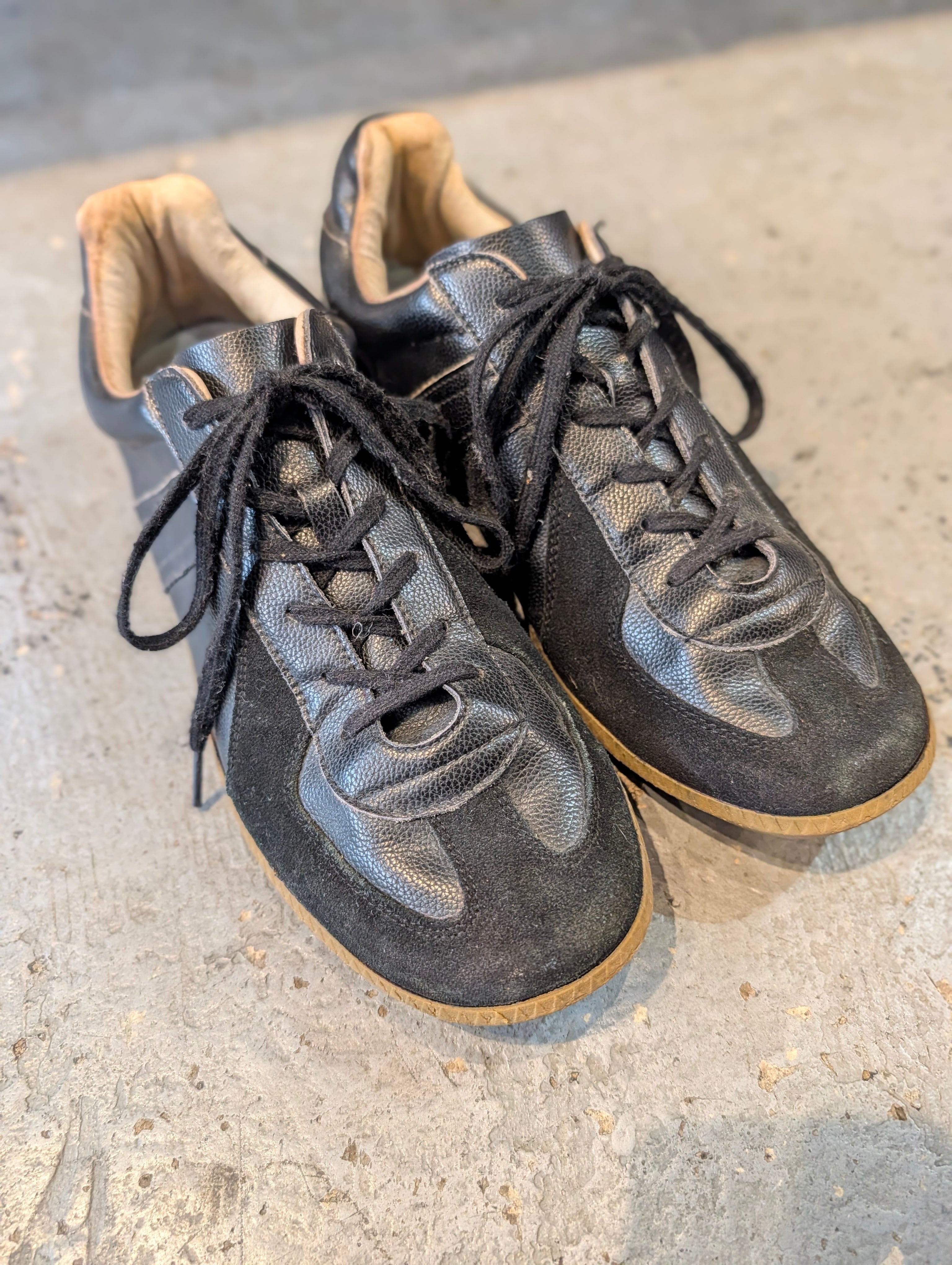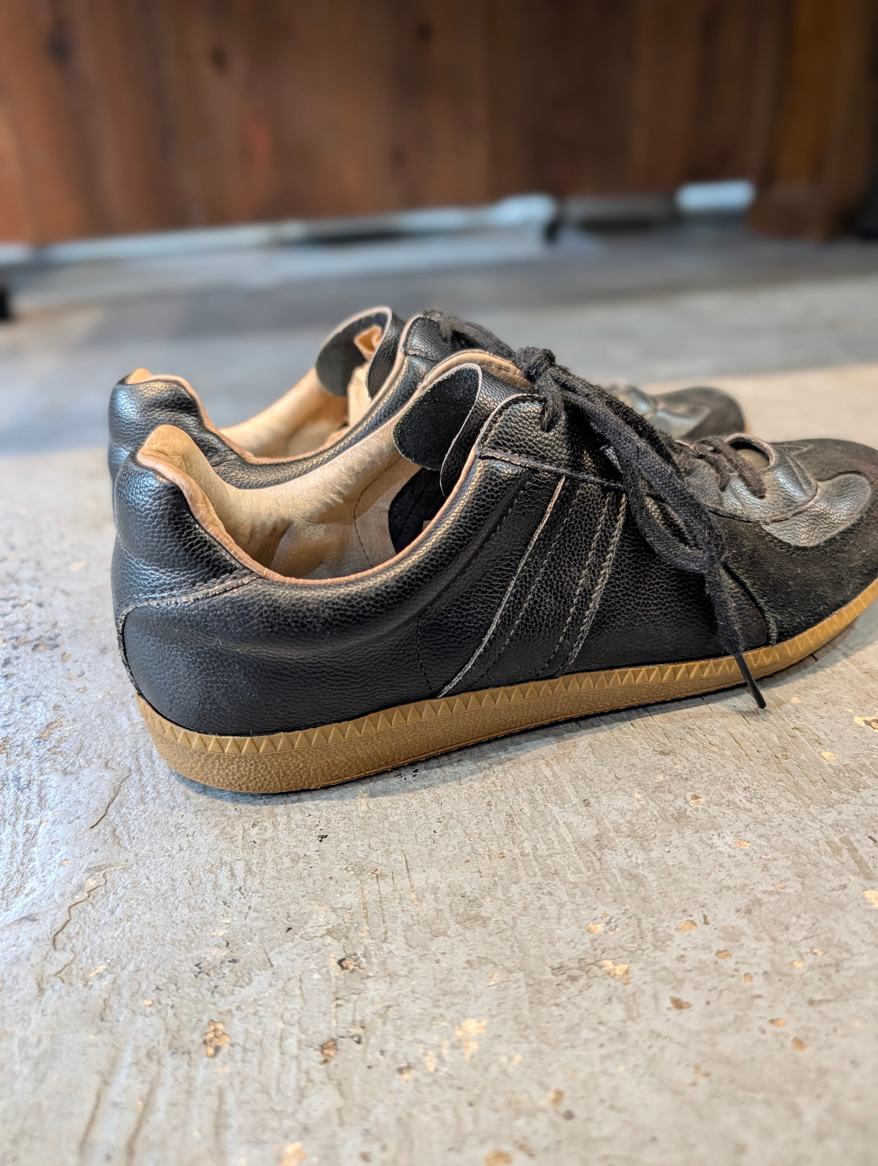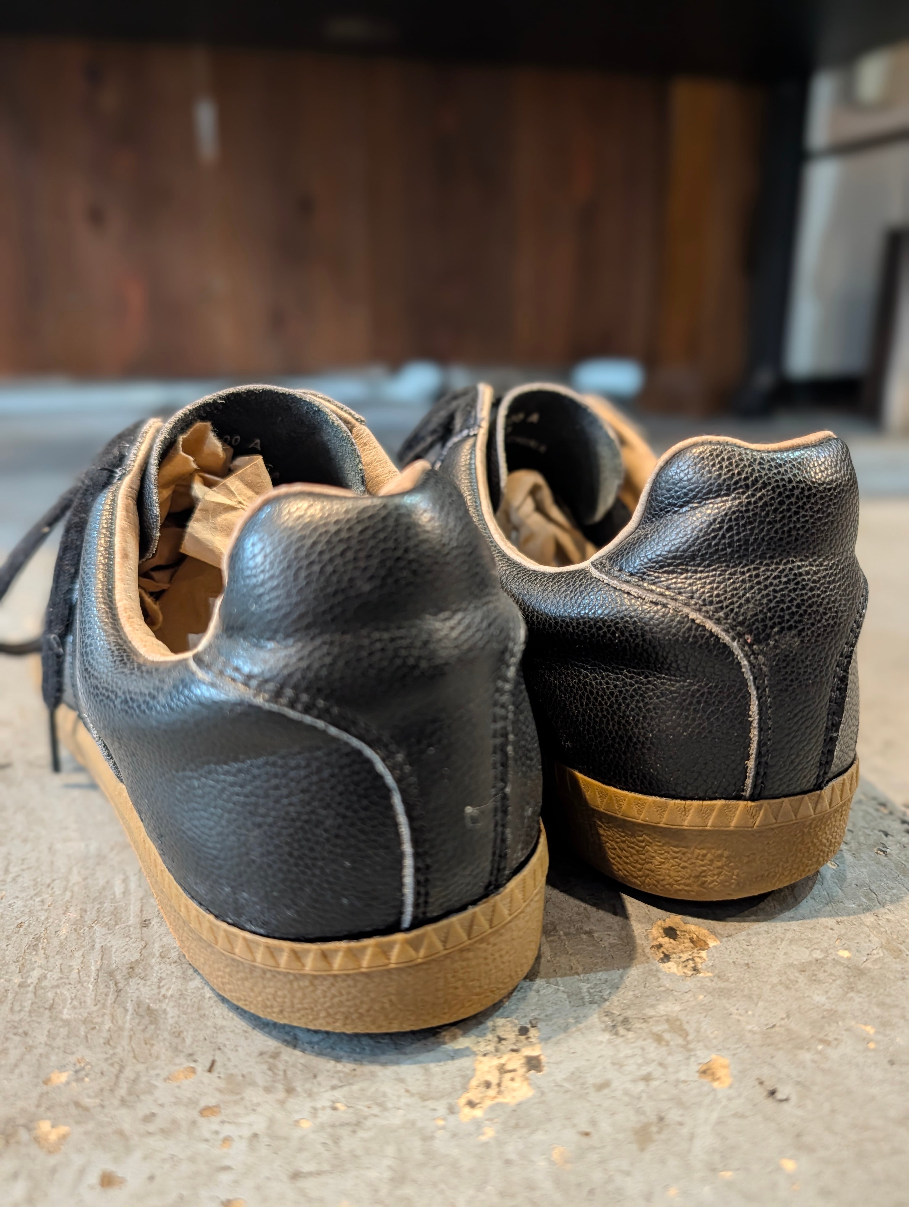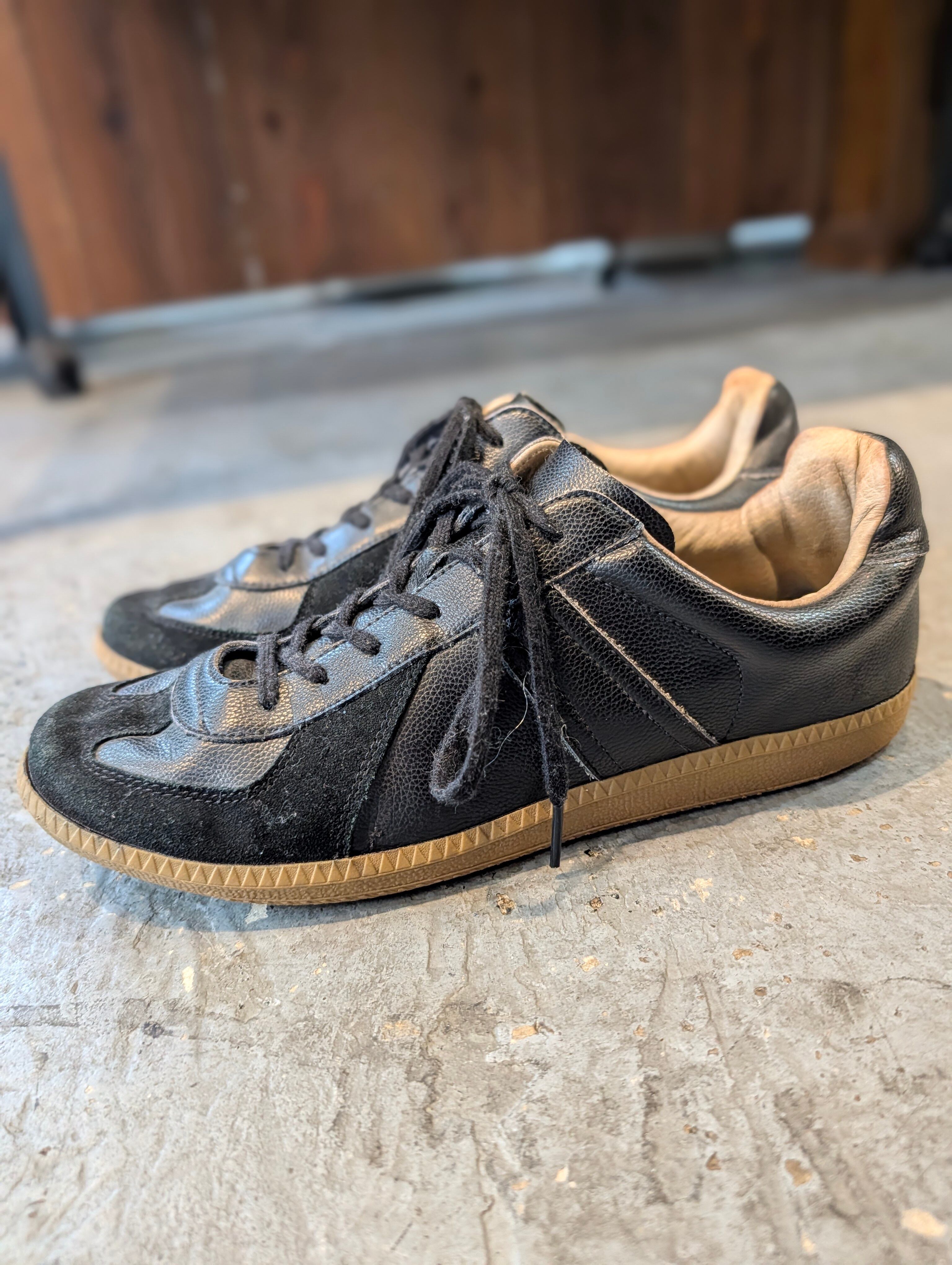 【ジャーマントレーナー シューズ】 [カラー] ブラック [サイズ] EU 43 JP 26.5cm相当 アウトソール(29.5cm) [状態]B S(新品同様):未使用、 または新品同様のアイテム A (使用感なし):数回使用した程度で 使用感が感じられないアイテム B(目立つ使用感なし):使用感が少ない、 または気にならないアイテム C(やや使用感あり):使用感があり、 やや気になる傷や汚れがあるアイテム D (傷・汚れあり):傷や汚れがあるが 使用には問題ないアイテム ※店頭にて同時販売しておりますので、売り切れの場合がございます。