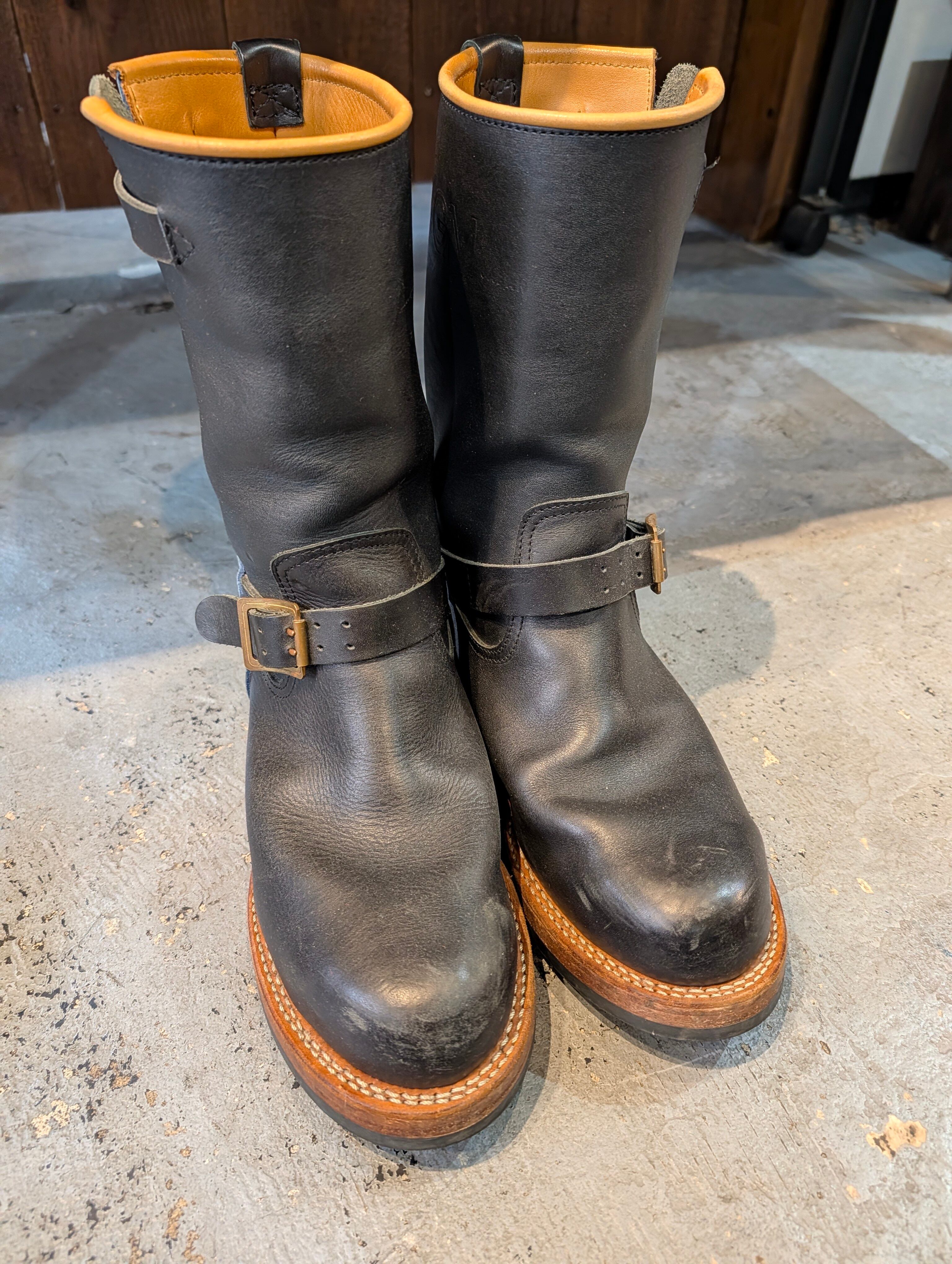 【MADE IN GM JAPAN×WOLF’S HEAD wolf's エンジニアブーツ】 [カラー] ブラック [サイズ] US 8.5 JP 26.5cmアウトソール(29.5cm) [状態]B S(新品同様):未使用、 または新品同様のアイテム A (使用感なし):数回使用した程度で 使用感が感じられないアイテム B(目立つ使用感なし):使用感が少ない、 または気にならないアイテム C(やや使用感あり):使用感があり、 やや気になる傷や汚れがあるアイテム D (傷・汚れあり):傷や汚れがあるが 使用には問題ないアイテム ※店頭にて同時販売しておりますので、売り切れの場合がございます。