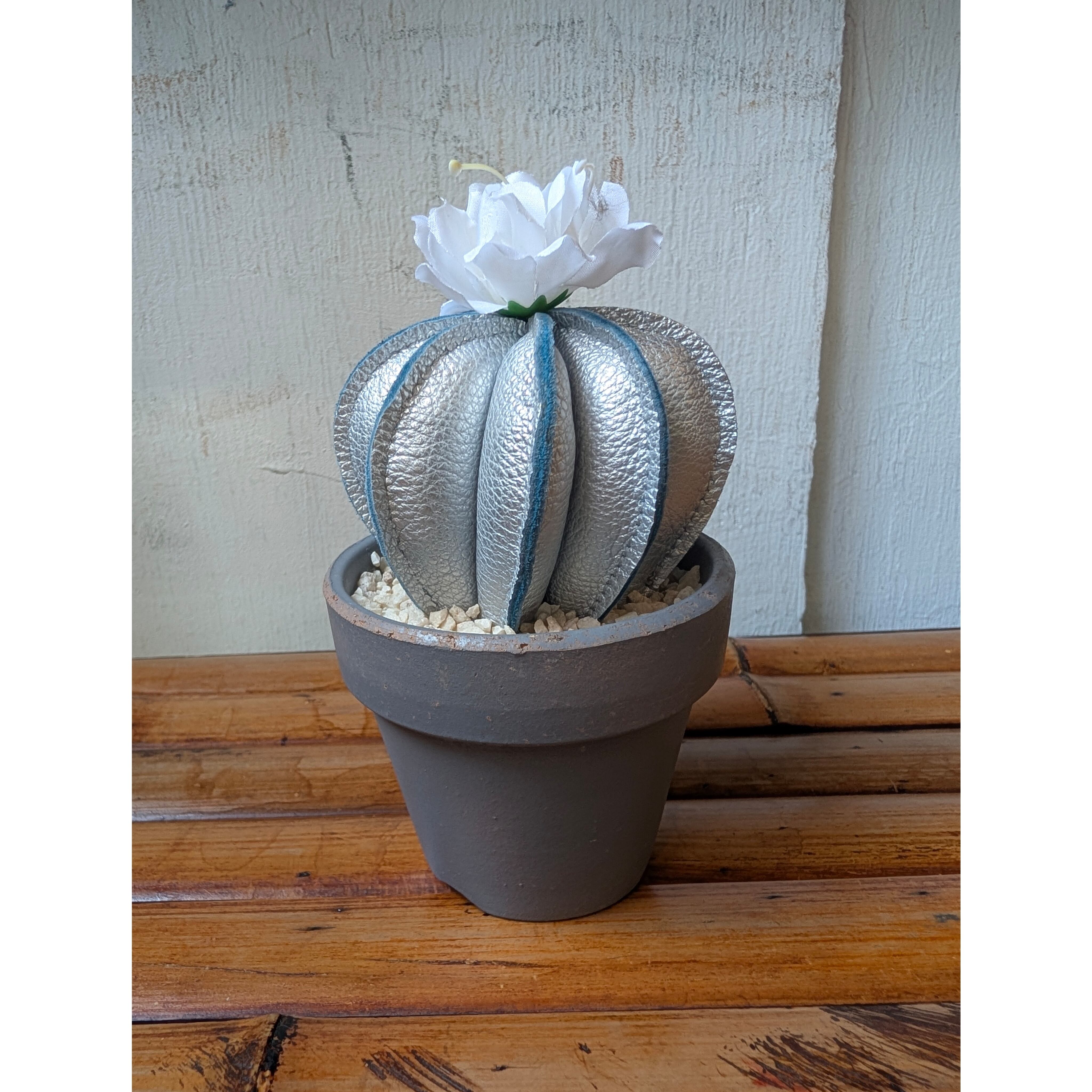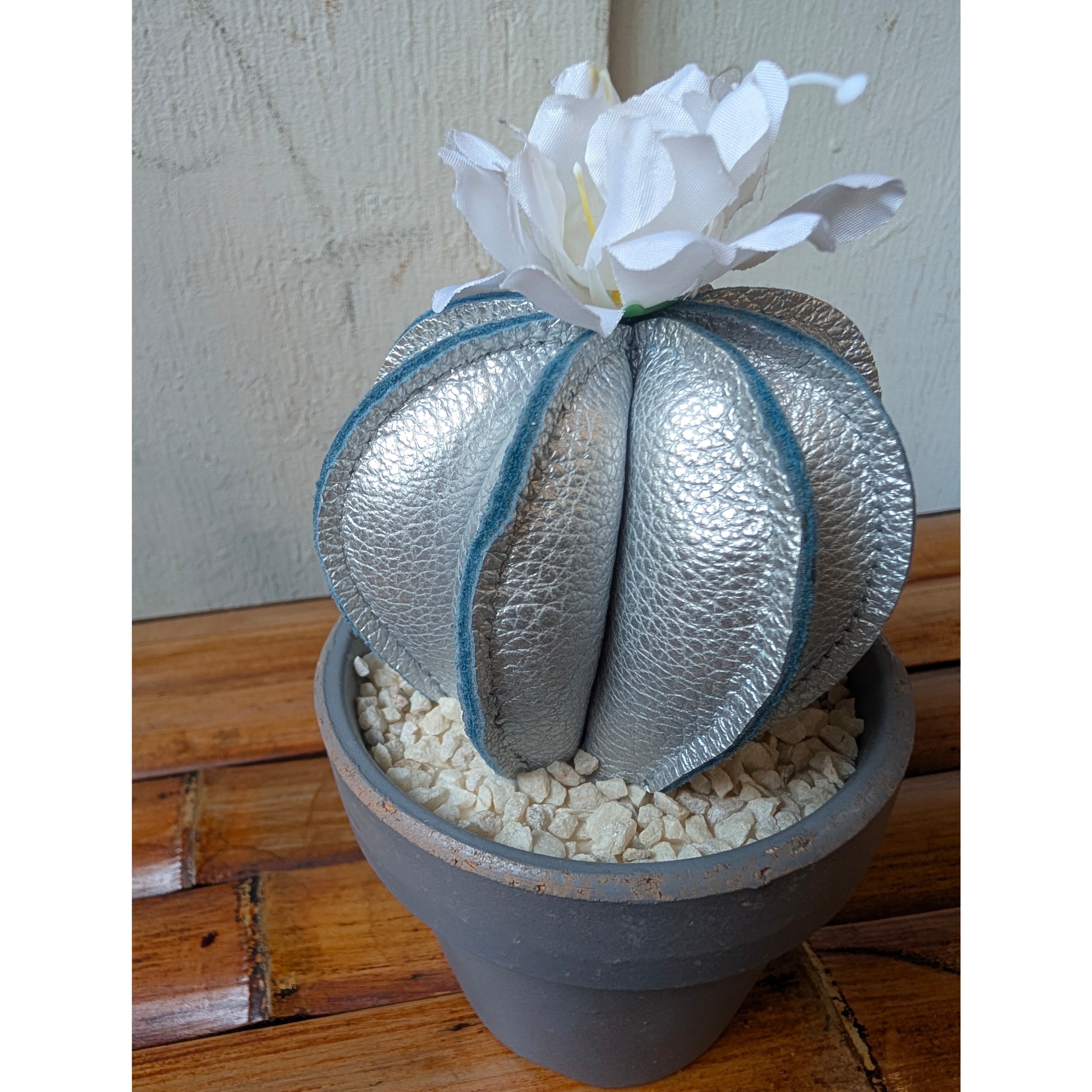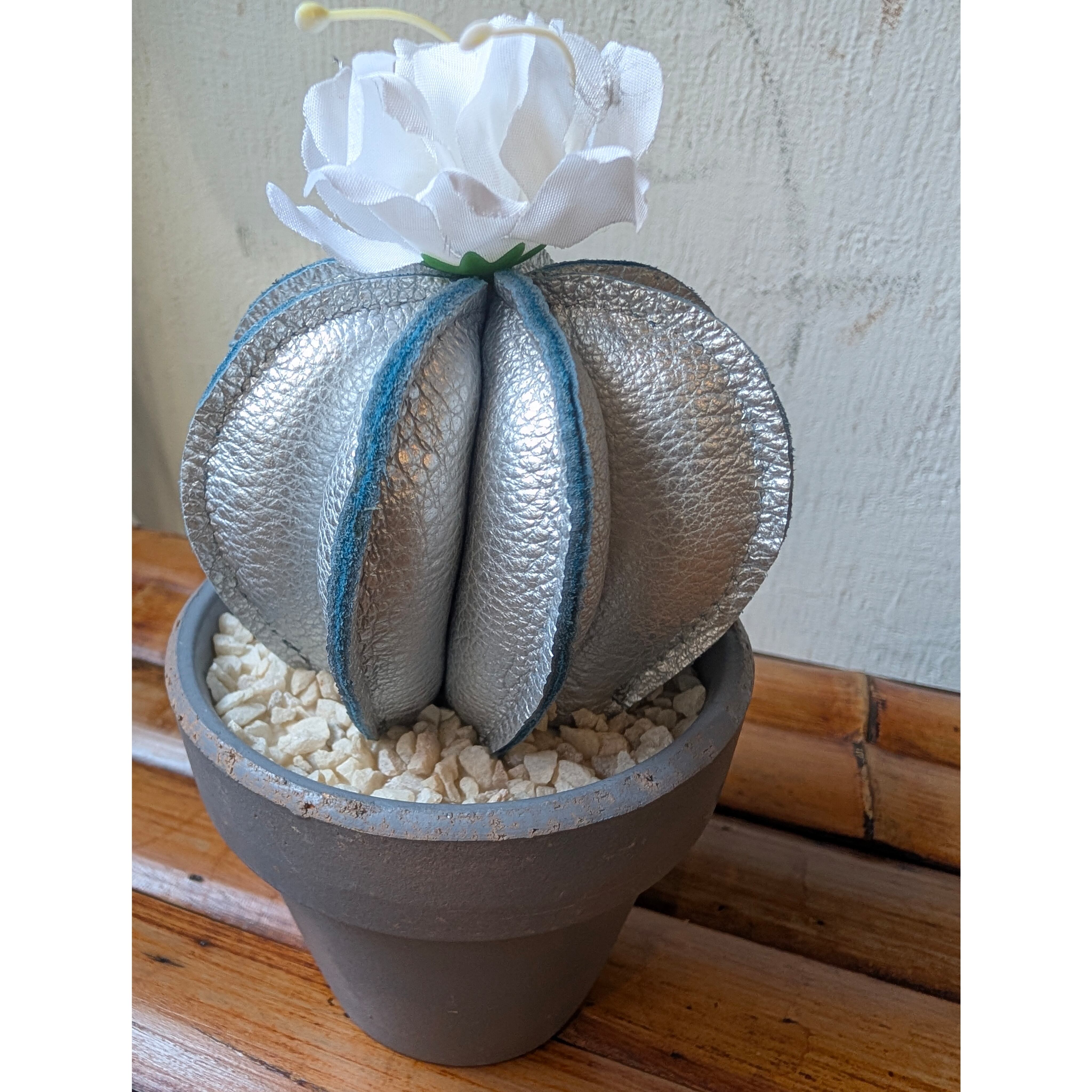 Leather Cactus [Silver] size : S 縦8㎝×横6.5㎝(鉢は含まない) ※革の表情は商品毎に、パーツ毎に変わりますので写真の商品と同じ様な仕上がりにはなりません。1着1着が1点物のアイテムになりますので予めご了承ください。 ※尚、店頭にて同時販売しておりますので、無くなり次第終了となります。