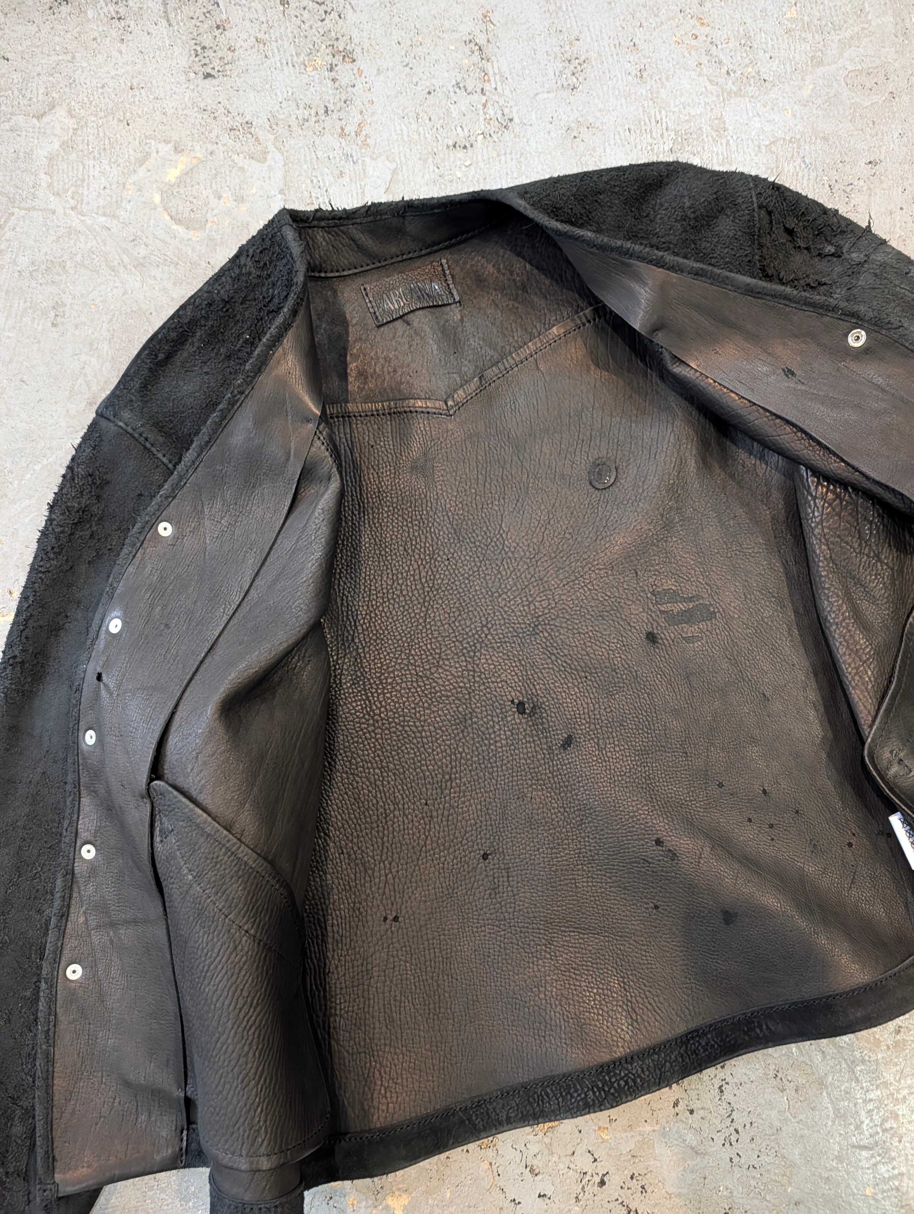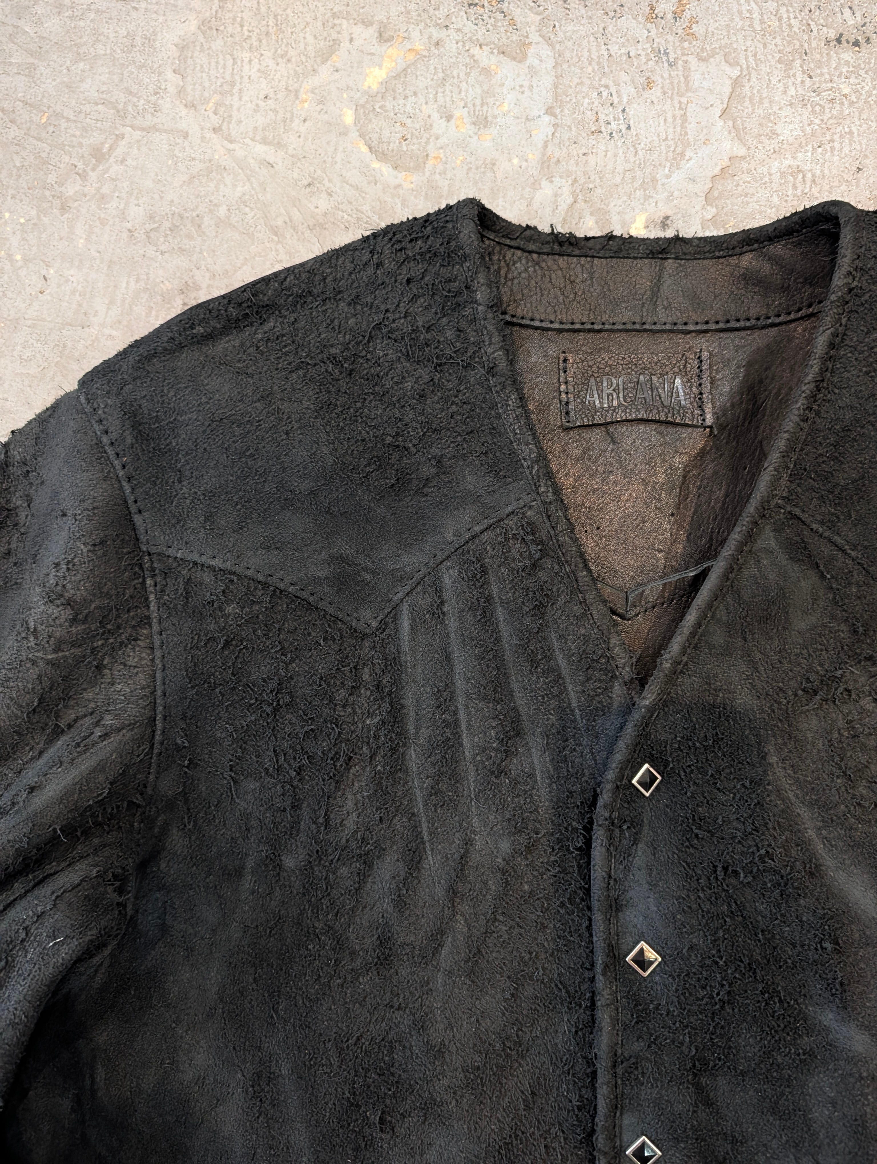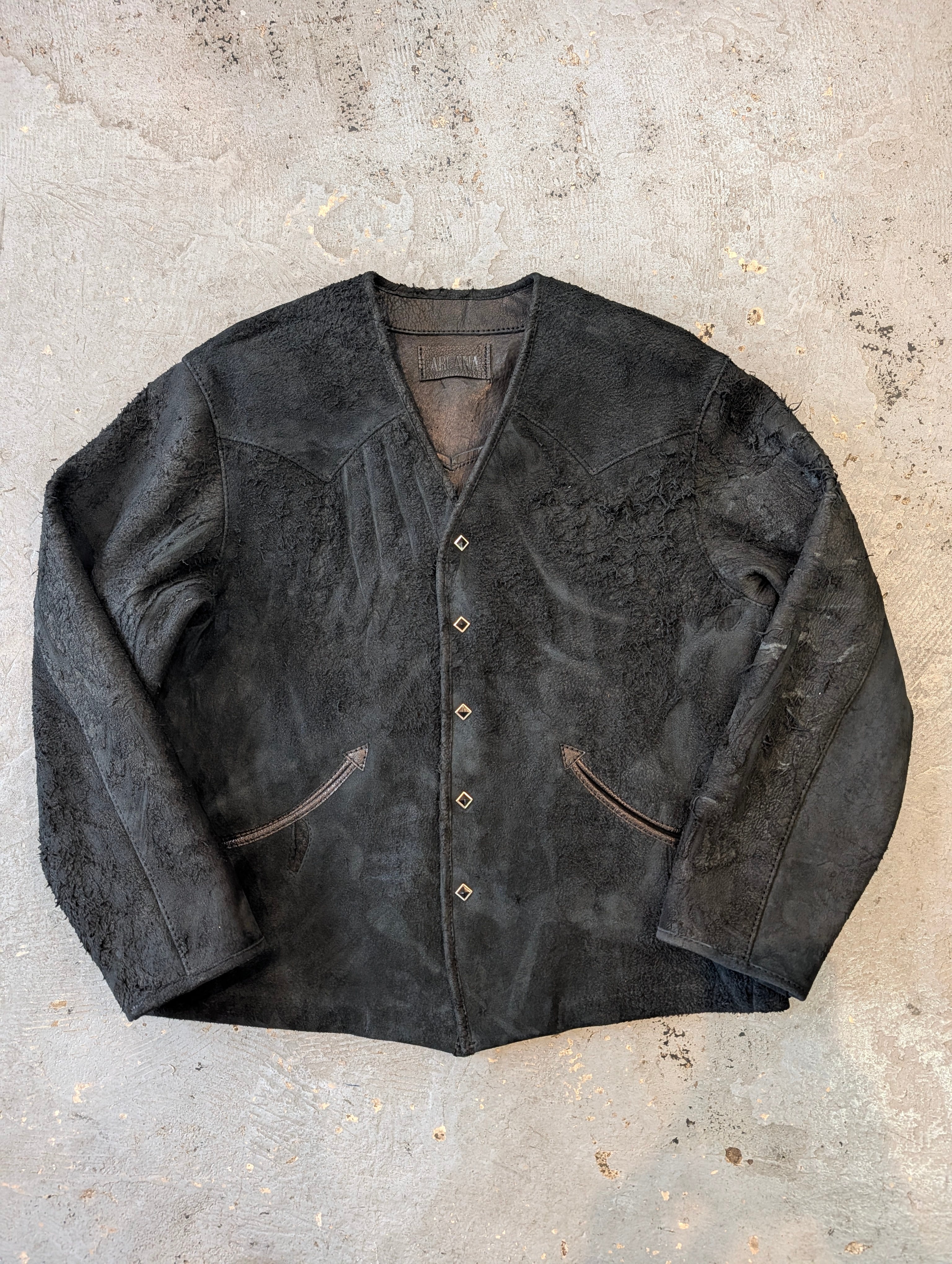 [“馬鹿”ウエスタンカーディガン 01] 【color】Black 【size】40 平置き実寸 肩幅 49 身幅 58 着丈 64 袖丈 58 多少の誤差はご了承ください! ※革の表情は商品毎に、パーツ毎に変わりますので写真の商品と同じ様な仕上がりにはなりません。1着1着が1点物のアイテムになりますので予めご承知くださいませ。 ※尚、店頭にて同時販売しておりますので、無くなり次第終了となります。
