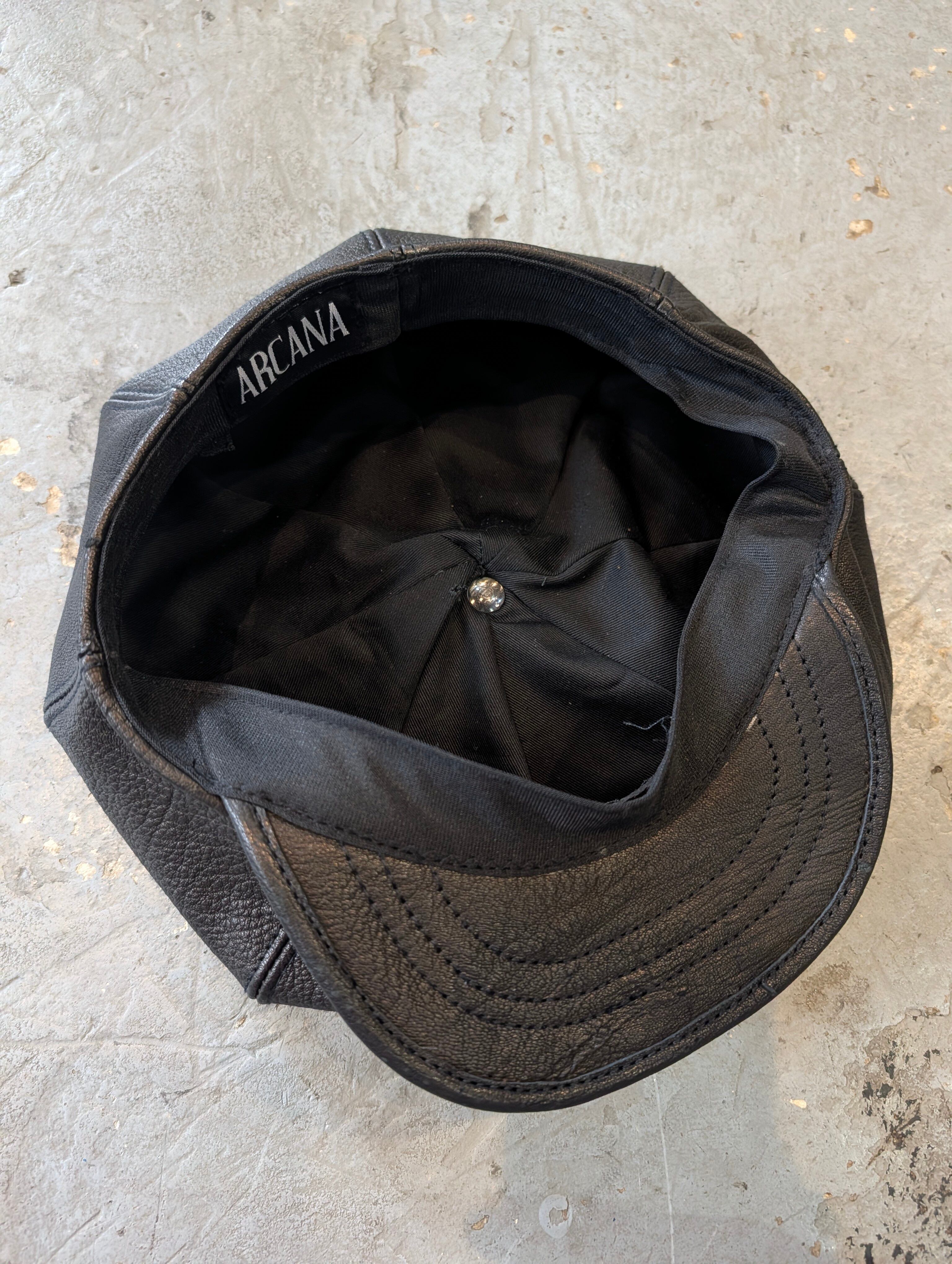 [アルカナレザー キャスケット] color:Black size : 57~62cm 調節可能 ※革の表情は商品毎に、パーツ毎に変わりますので写真の商品と同じ様な仕上がりにはなりません。1着1着が1点物のアイテムになりますので予めご承知くださいませ。