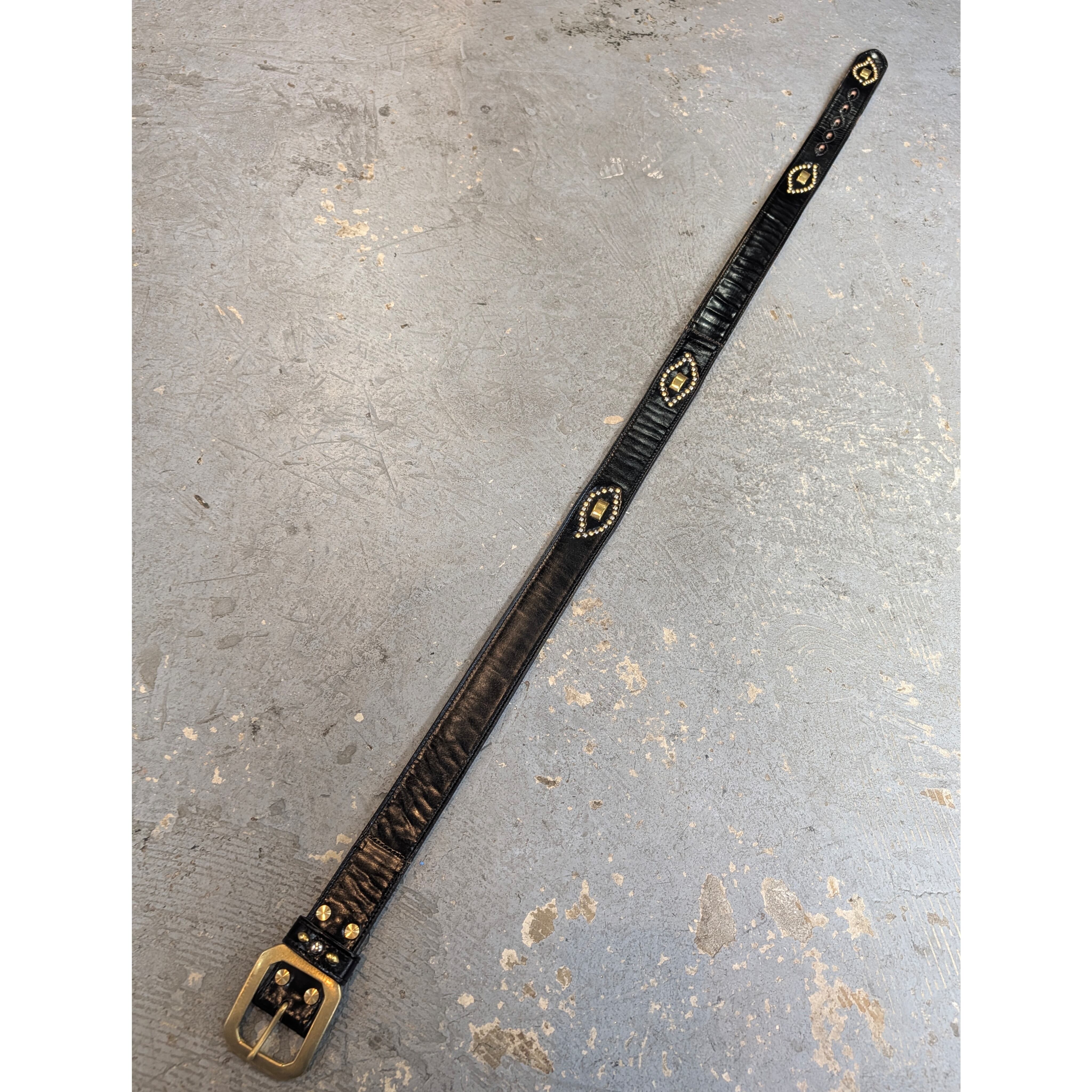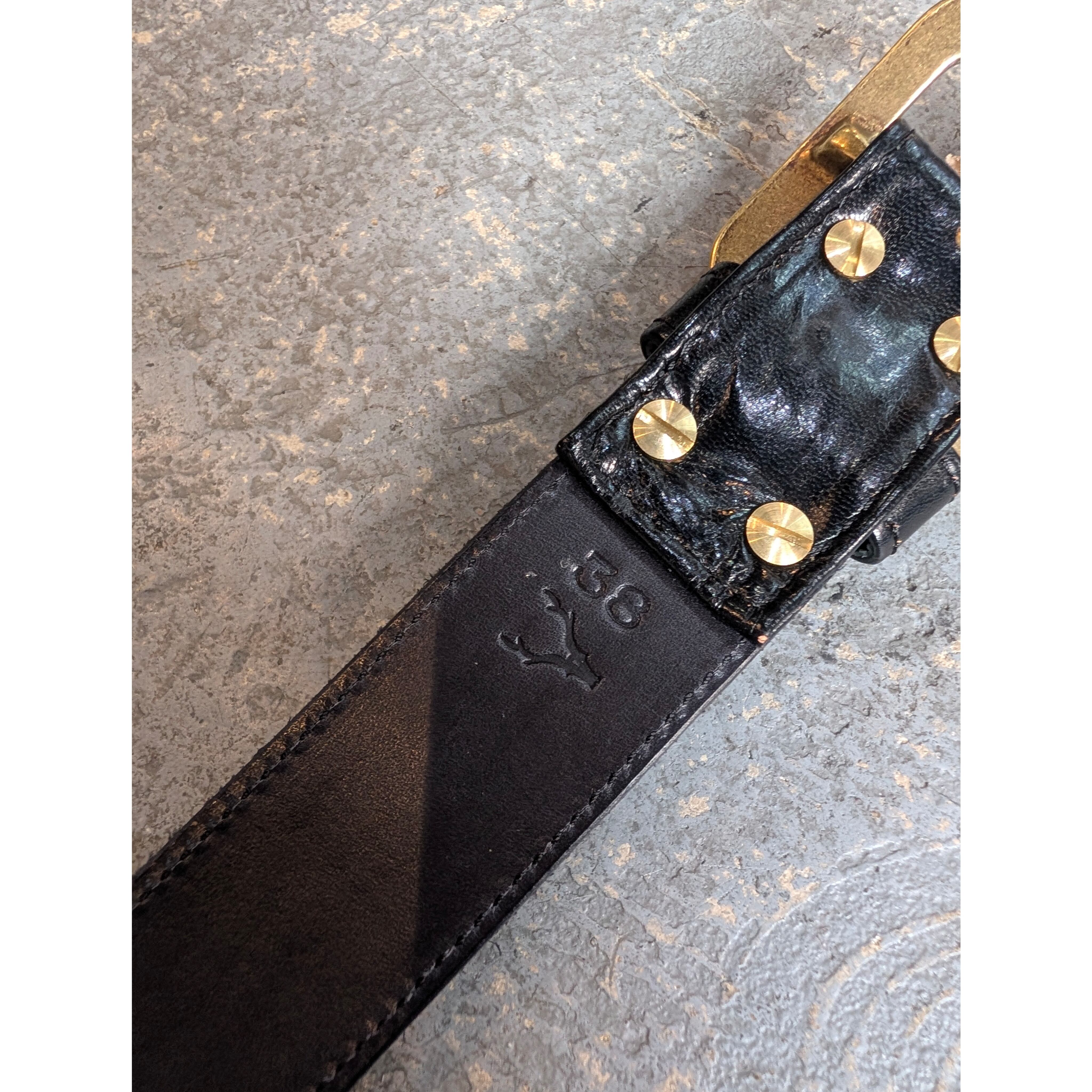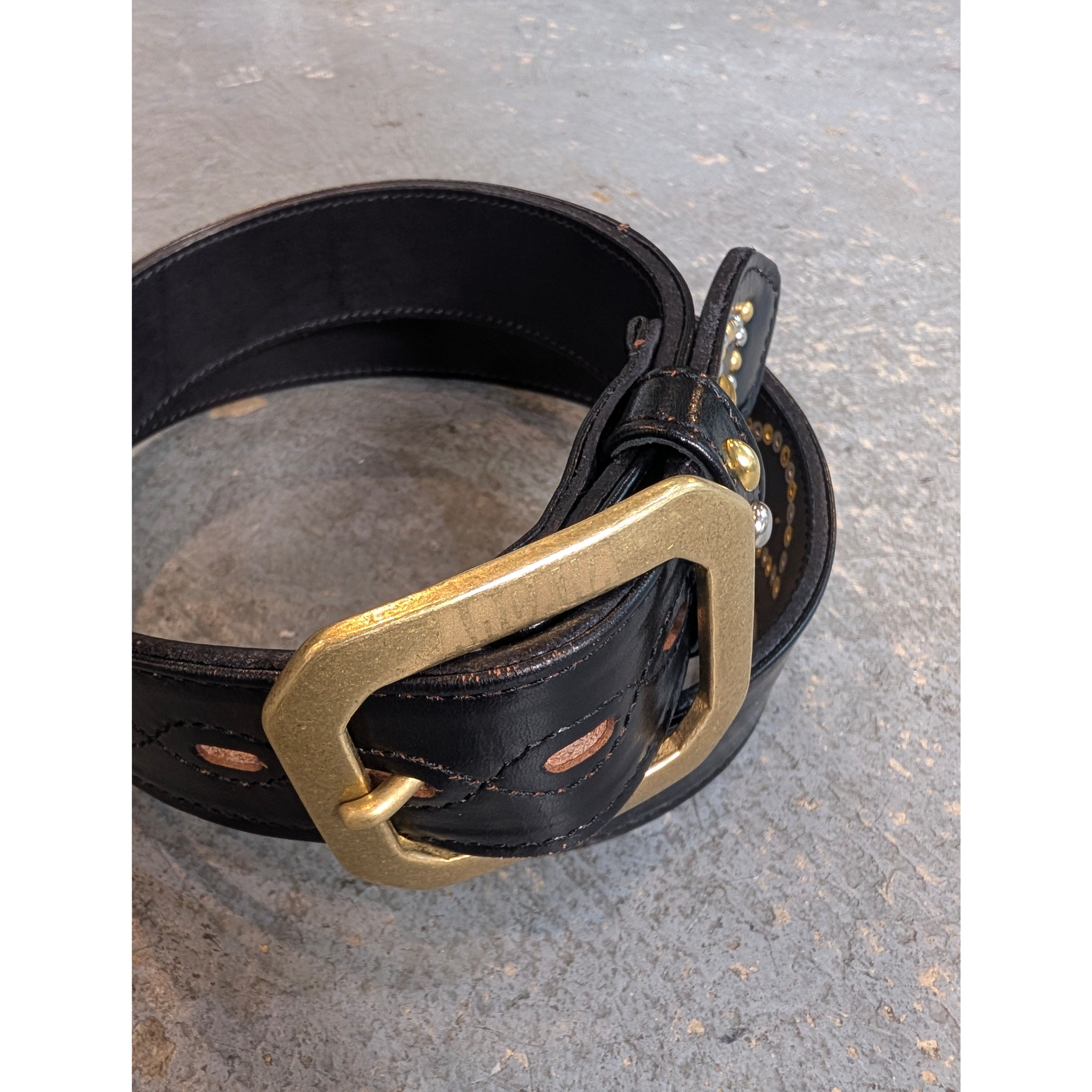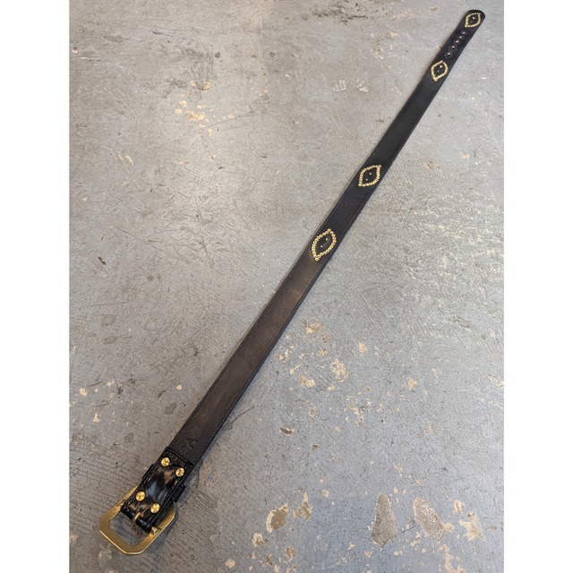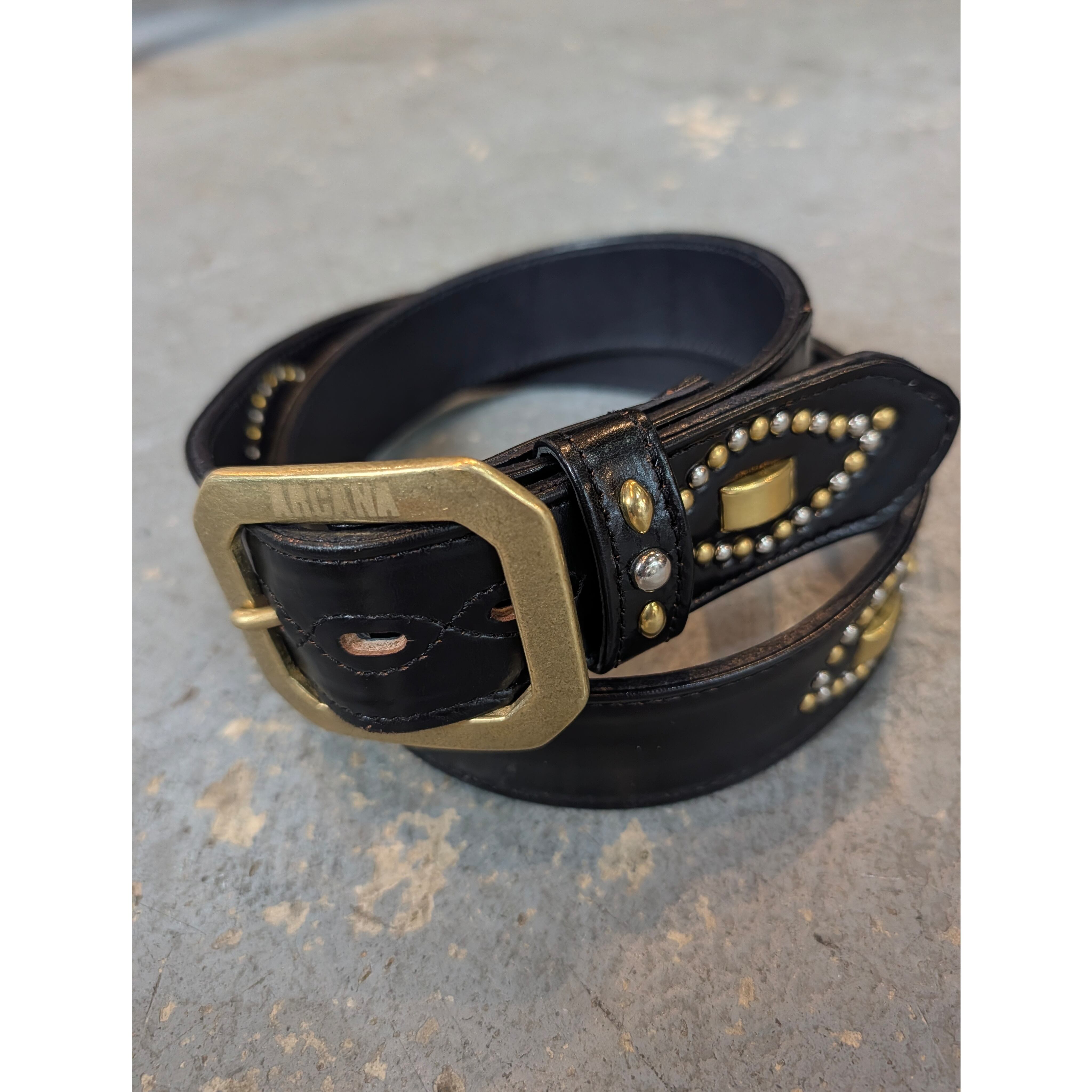 [アルカナレザー “鹿の目” ベルト] color:ブラック size : 38 / 5穴 後ろから一番前の穴まで : 10cm 後ろから一番遠い穴まで : 20cm バックル含む最長 : 114cm 含まない最長 : 111cm 本体幅 : 3.8cm バックル幅 : 6cm size : 40 / 5穴 後ろから一番前の穴まで : 10cm 後ろから一番遠い穴まで : 20cm バックル含む最長 : 118.7cm 含まない最長 : 115.5cm 本体幅 : 3.8cm バックル幅 : 6cm ※革の表情は商品毎に、パーツ毎に変わりますので写真の商品と同じ様な仕上がりにはなりません。1着1着が1点物のアイテムになりますので予めご承知くださいませ。