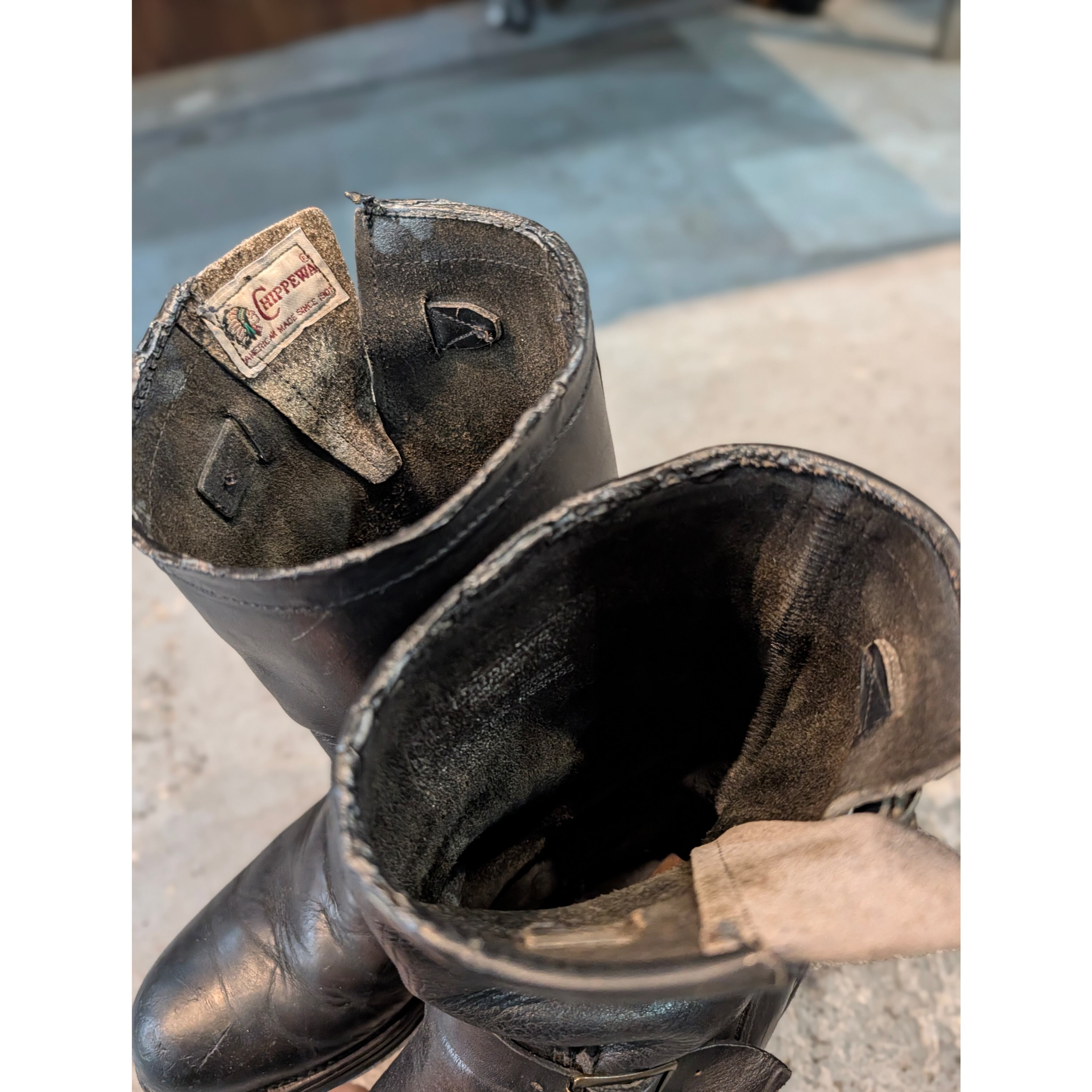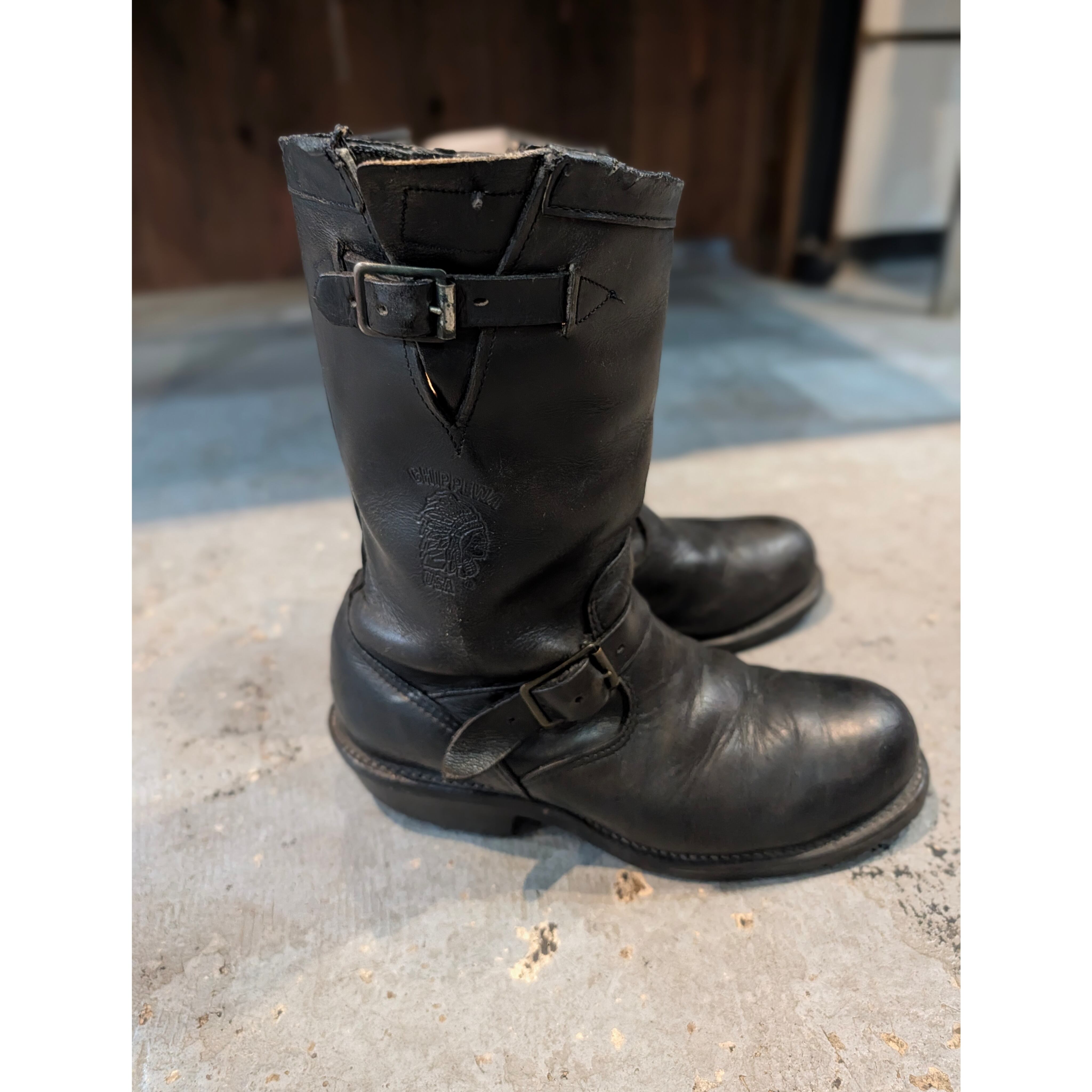 [90年代 チペワ エンジニアブーツ] [カラー] ブラック [サイズ] US 8.5 JP 26.5m(アウトソール 29cm) [状態]C S(新品同様):未使用、 または新品同様のアイテム A (使用感なし):数回使用した程度で 使用感が感じられないアイテム B(目立つ使用感なし):使用感が少ない、 または気にならないアイテム C(やや使用感あり):使用感があり、 やや気になる傷や汚れがあるアイテム D (傷・汚れあり):傷や汚れがあるが 使用には問題ないアイテム ※店頭にて同時販売しておりますので、売り切れの場合がございます。 ※手数料が含まれている為、店頭価格と異なりますがご了承ください。