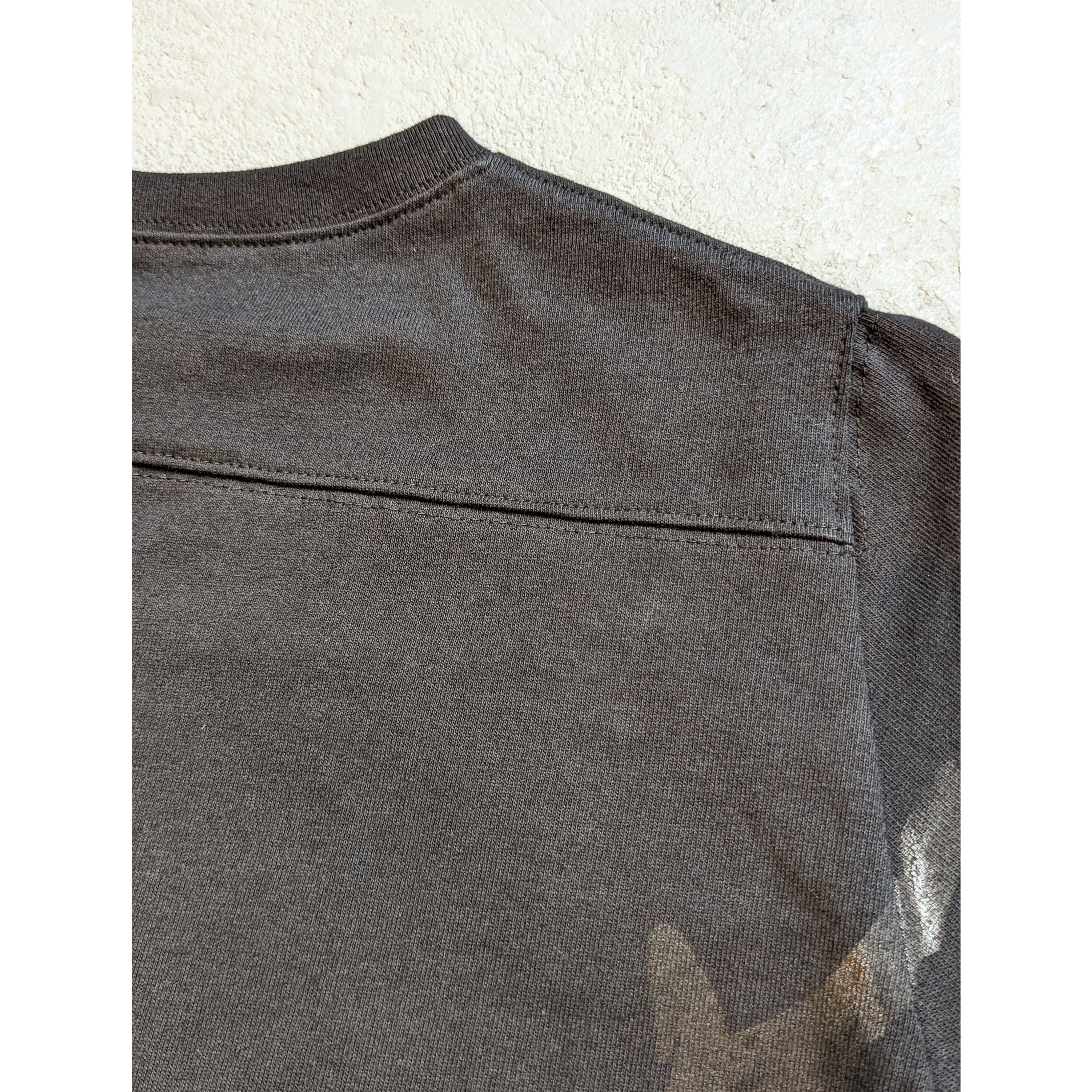 ”ARCANA(アルカナ)”オリジナルフットボールTシャツ、第2弾です。 前回と同様、従来のフットボールTシャツに、ARCANAならではのディティール、デザインにこだわり、ポケットの革にはアルカナレザー“ディアスキン(鹿革)”を使用。 今回はボディと同色プリントで、XLの着丈・袖丈を前回より少し長く調整しました。 こちらはバックロゴタイプとなります。 ※1着1着手作業で印刷しており、部材やサイズによりプリントに個体差がありますので、予めご了承ください。 ※尚、店頭にて同時販売しておりますので、無くなり次第終了となります。 color : BLACK size : M , XL [M] 着丈 63 肩幅 43 身幅 57 袖丈 46 [XL] 着丈 67 肩幅 50 身幅 65 袖丈 47.5