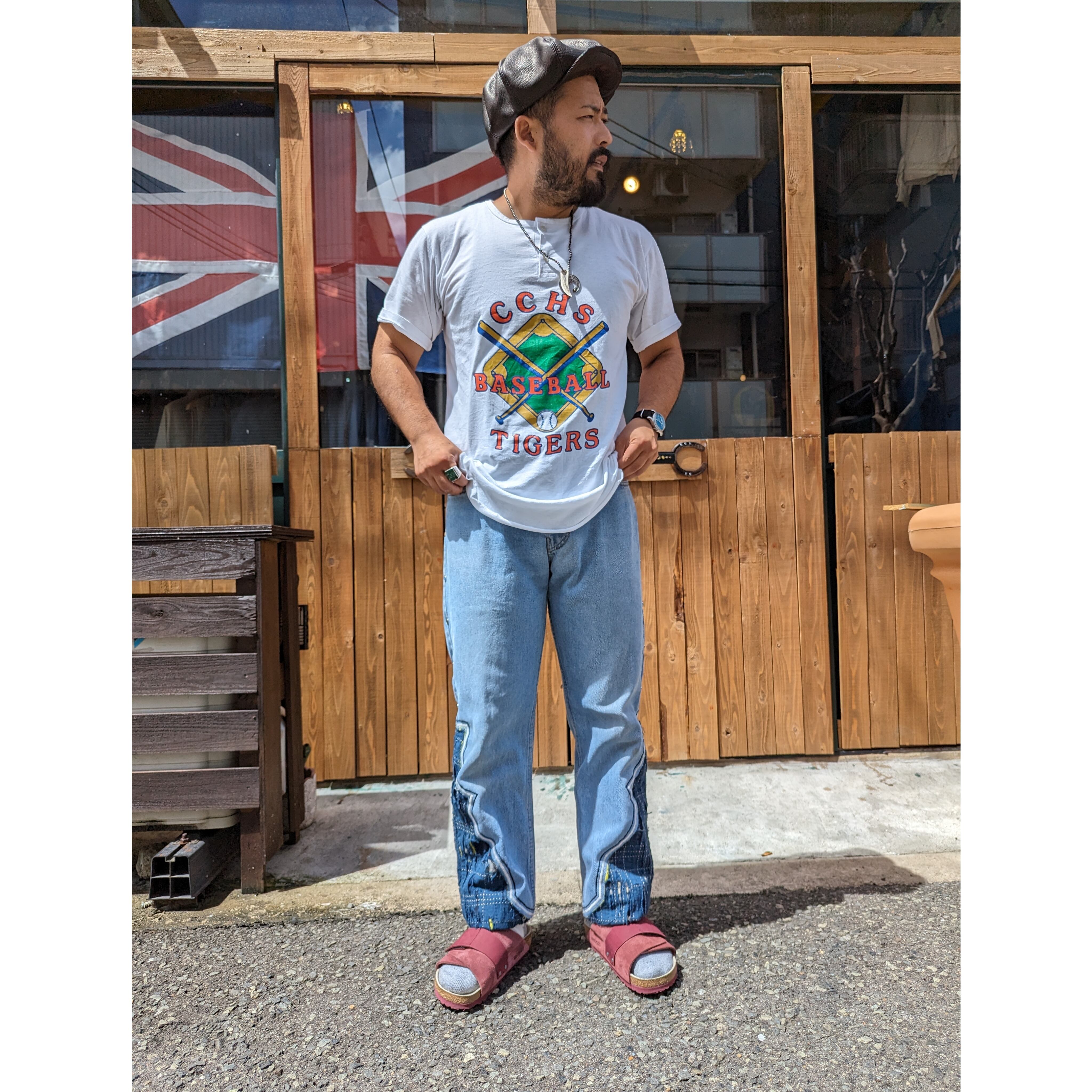 ・usedのUSA製 Levi's デニムをベースに、江戸時代から昭和初期まで使用されていた古布と、発色の良いカラー綿生地を用いてオリジナル襤褸テキスタイルを作成しております。 ウエスタン調のデザインモチーフにARCANAロゴを忍び込ませ側面にカスタム。 ウエストから膝辺りにかけてサイドシームにウエスタンシャツに使われるボタンをデザインとして配置しております。 size:w34 ウエスト 43㎝ ワタリ 32㎝ 股下 73㎝ ※尚、店頭にて同時販売しておりますので、無くなり次第終了となります。