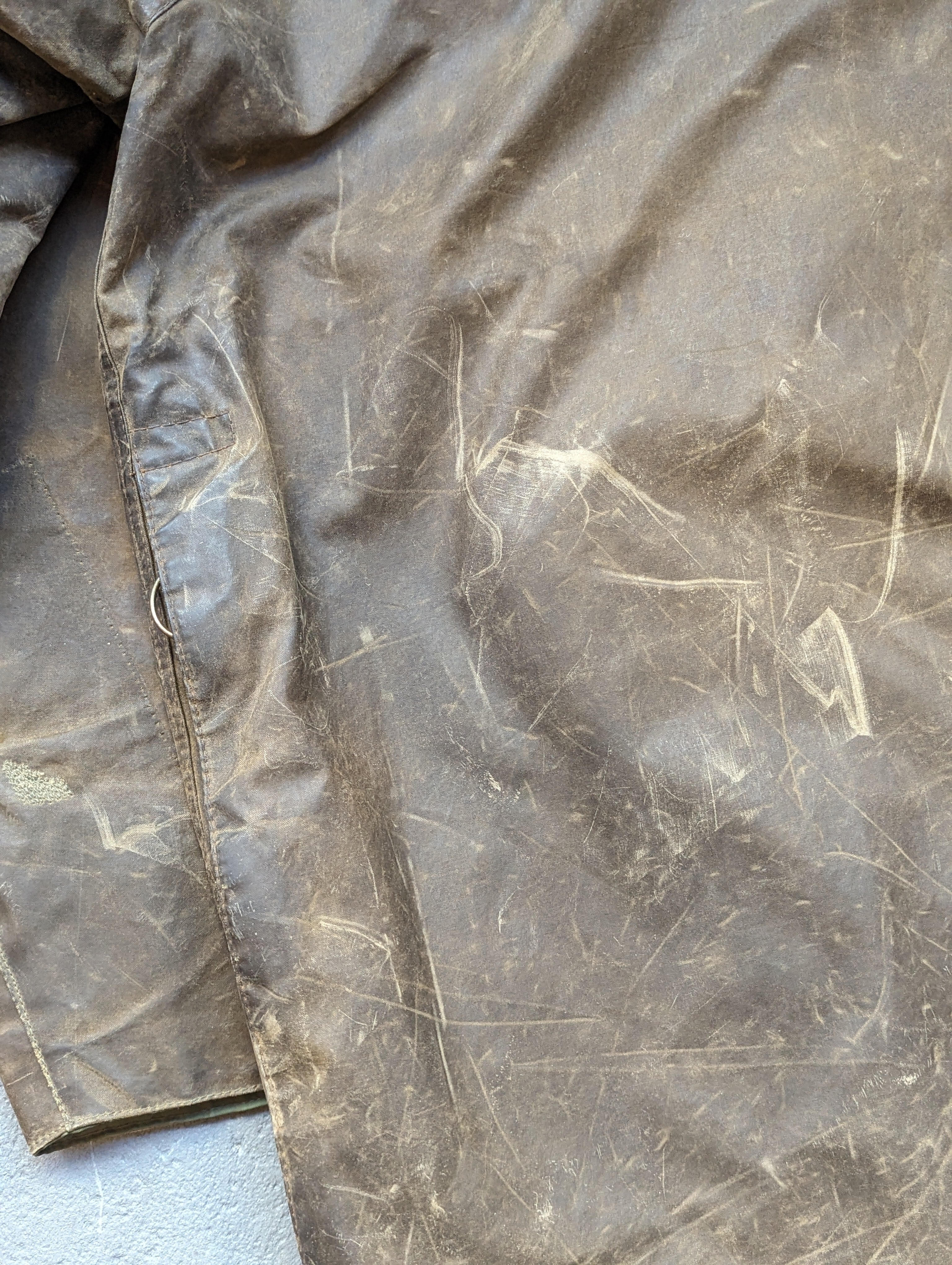 【98年製 バブアー ムーアランド 】 [サイズ] 着丈 80 身幅 63 袖丈 76 [状態]C S(新品同様):未使用、 または新品同様のアイテム A (使用感なし):数回使用した程度で 使用感が感じられないアイテム B(目立つ使用感なし):使用感が少ない、 または気にならないアイテム C(やや使用感あり):使用感があり、 やや気になる傷や汚れがあるアイテム D (傷・汚れあり):傷や汚れがあるが 使用には問題ないアイテム