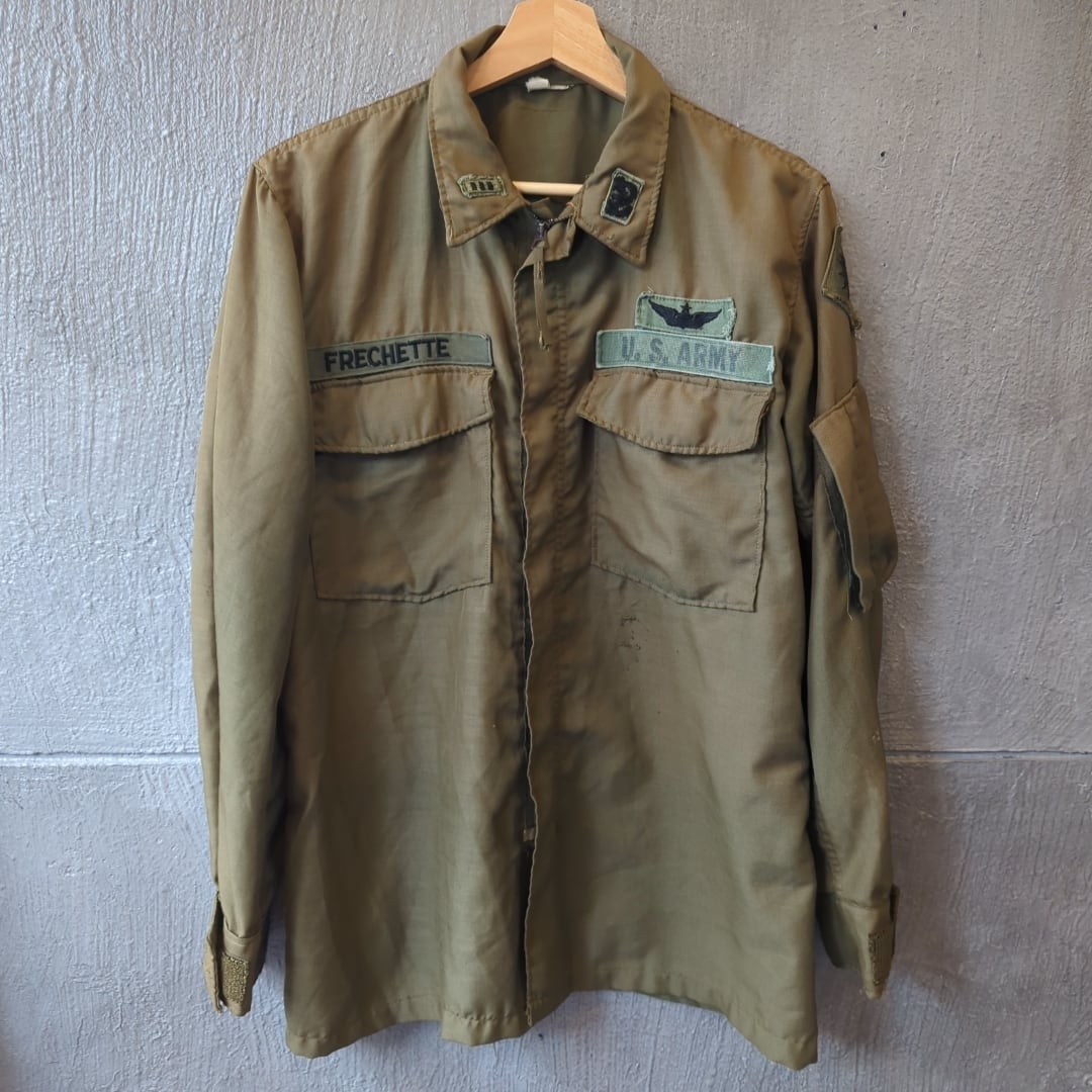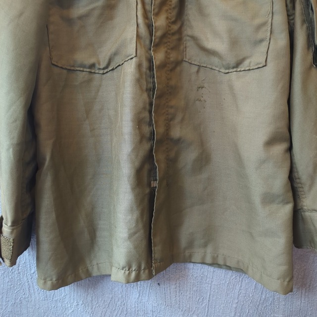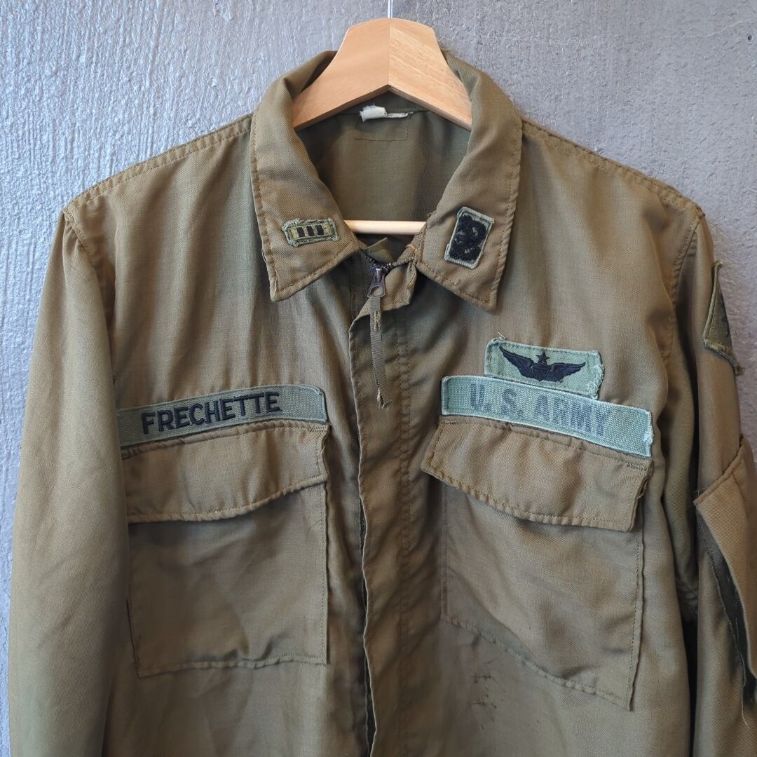 【70年代 ヴィンテージ U.S.ARMY ヘリクルーシャツ】 [サイズ]Medium-Regular 着丈 72 肩幅 46 身幅 58 袖丈 63 [状態]C S(新品同様):未使用、 または新品同様のアイテム A (使用感なし):数回使用した程度で 使用感が感じられないアイテム B(目立つ使用感なし):使用感が少ない、 または気にならないアイテム C(やや使用感あり):使用感があり、 やや気になる傷や汚れがあるアイテム D (傷・汚れあり):傷や汚れがあるが 使用には問題ないアイテム