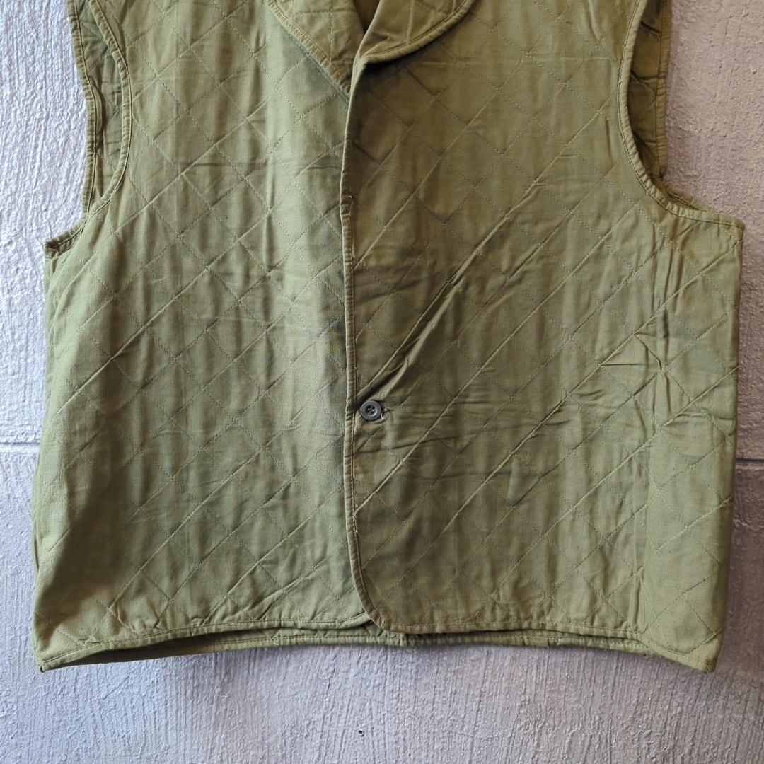 【1959年製 ベルギー軍 キルティング ミリタリーベスト ①】 [サイズ] T.5 (L相当) 着丈 66.5 肩幅 51 身幅 60 [状態]B S(新品同様):未使用、 または新品同様のアイテム A (使用感なし):数回使用した程度で 使用感が感じられないアイテム B(目立つ使用感なし):使用感が少ない、 または気にならないアイテム C(やや使用感あり):使用感があり、 やや気になる傷や汚れがあるアイテム D (傷・汚れあり):傷や汚れがあるが 使用には問題ないアイテム
