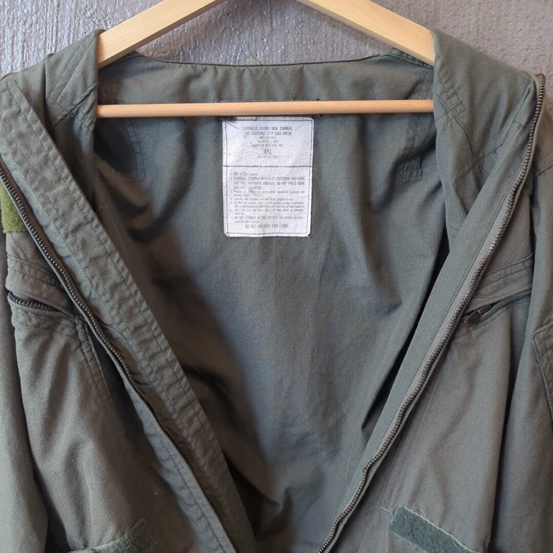 【1982年製 米軍 U.S. エアフォース ジャンプスーツ】 [サイズ]40L(L相当) 総丈 159 肩幅 53 身幅 54 ウエスト 53 袖丈 58 股下 78 ワタリ 34 裾幅 19 [状態]C S(新品同様):未使用、 または新品同様のアイテム A (使用感なし):数回使用した程度で 使用感が感じられないアイテム B(目立つ使用感なし):使用感が少ない、 または気にならないアイテム C(やや使用感あり):使用感があり、 やや気になる傷や汚れがあるアイテム D (傷・汚れあり):傷や汚れがあるが 使用には問題ないアイテム