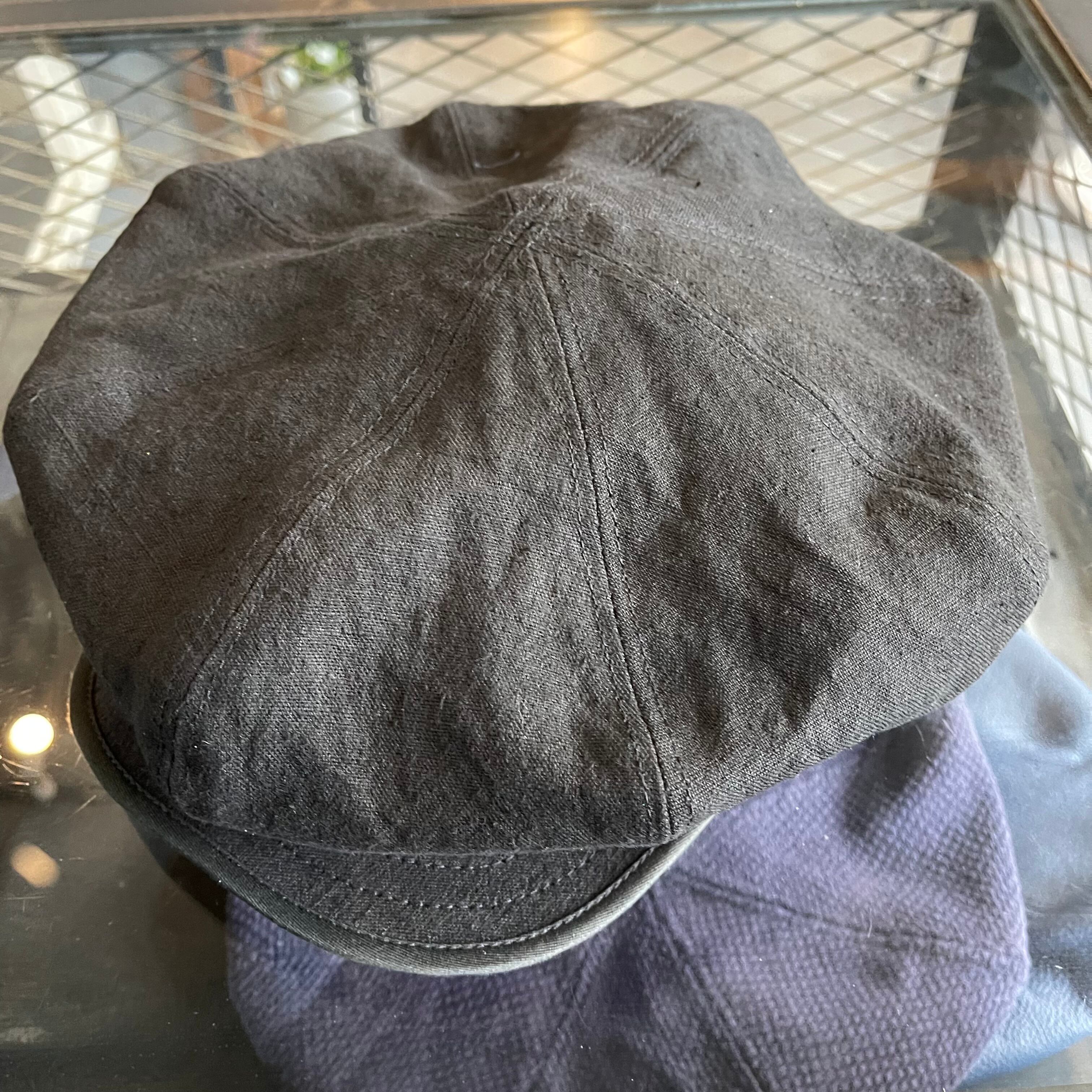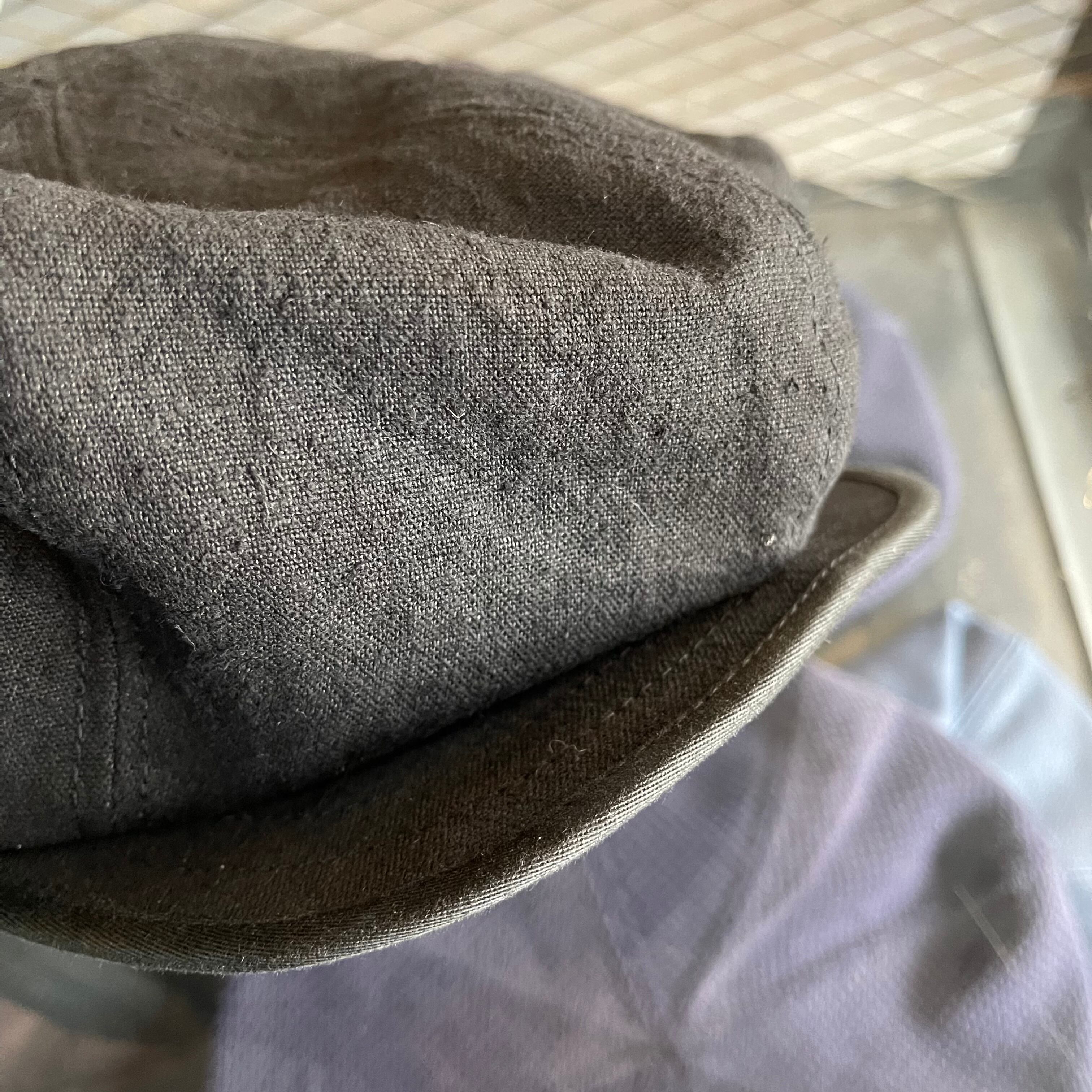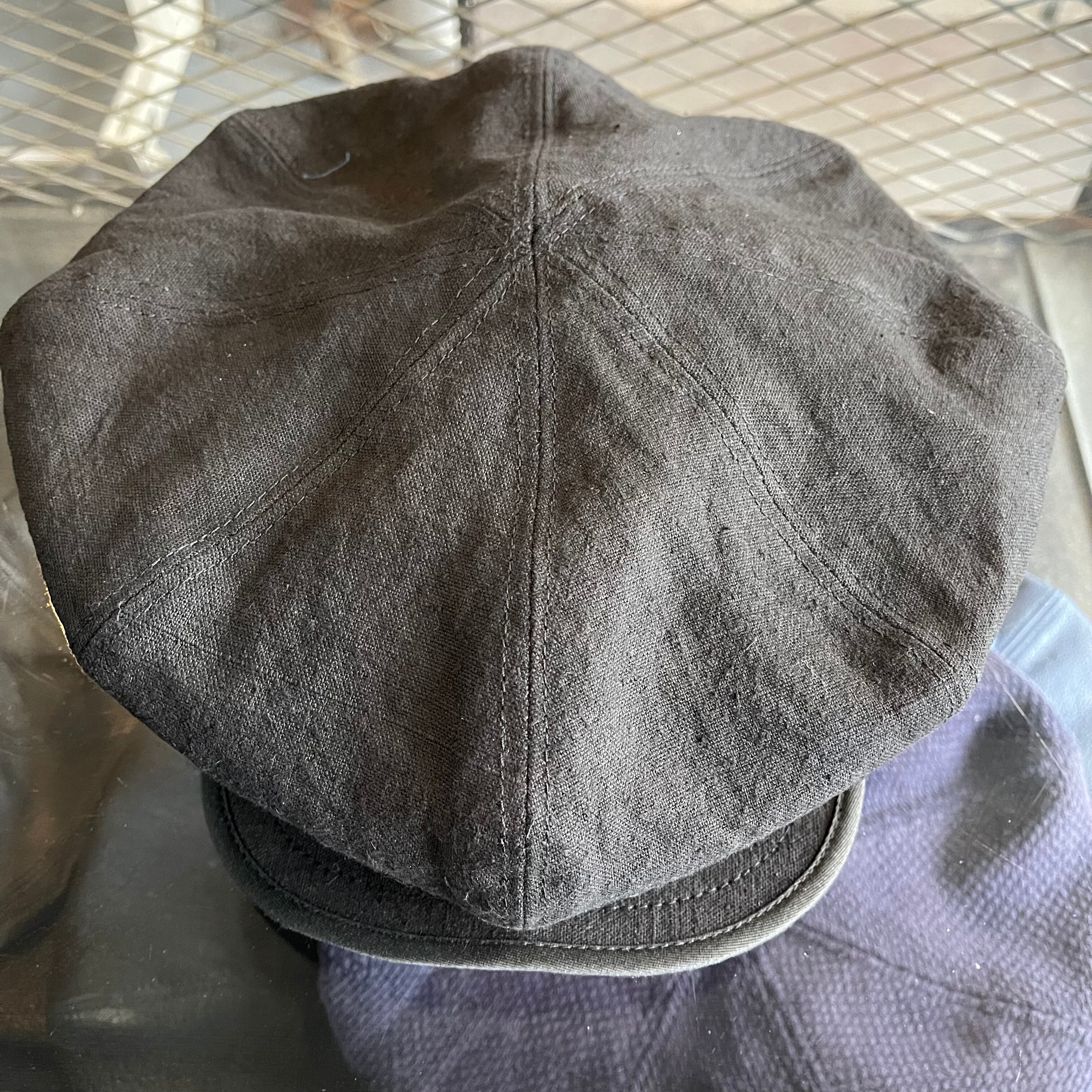 約100年ほど前のフレンチアンティークの生成りリネン生地を自社で黒色に染め上げた、このARCANA BLACK LINEN NEWSBOY CAP。ユニークなデザインで、他とは一線を画す無骨なデザインが魅力です。 ※製品の特性上、色落ちや色移りが起こる可能性があります。洗濯時はくれぐれもご注意ください。 サイズ 約57〜62cm